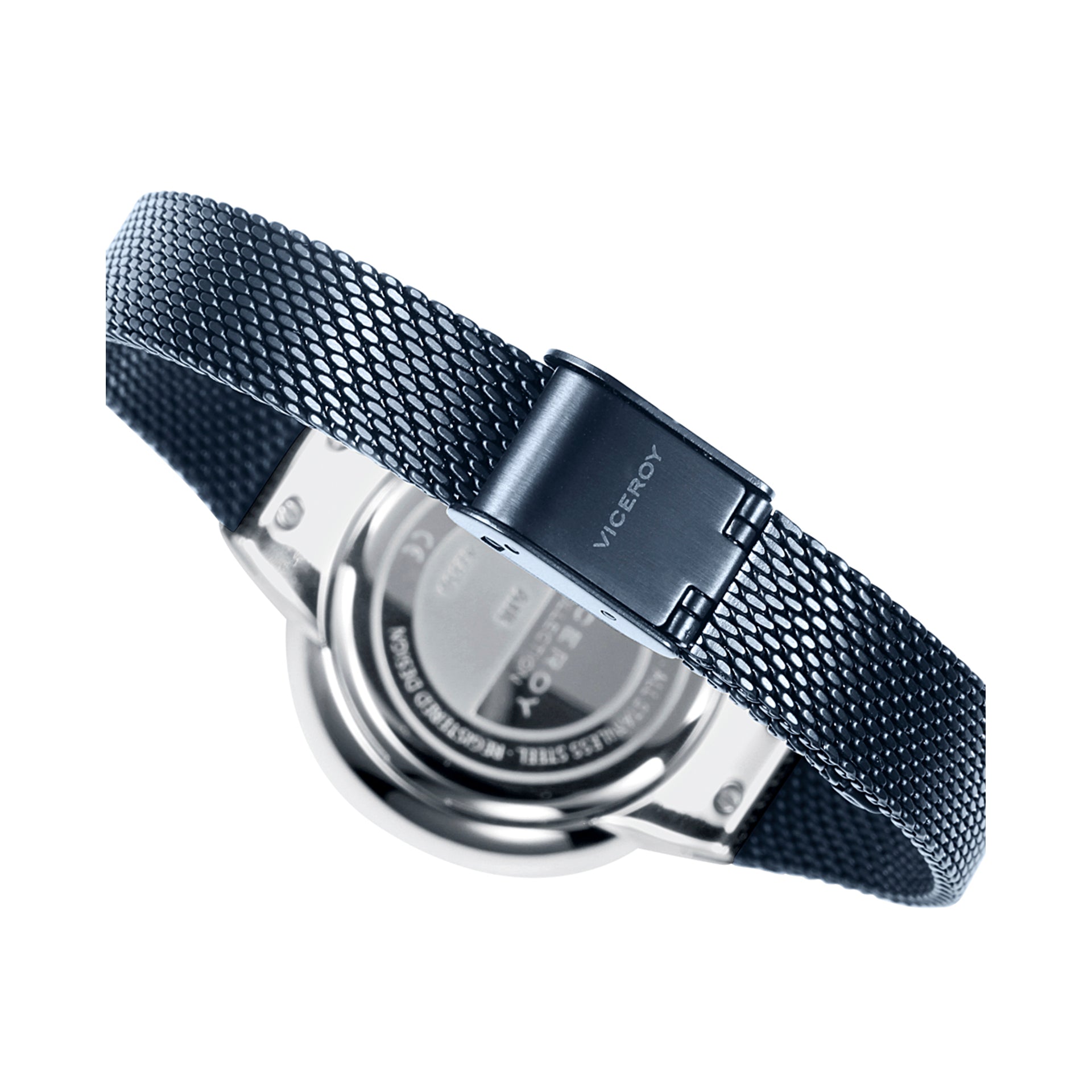Reloj caja de acero y correa de silicona azul,movimiento cuarzo. Pulsera de acero y piel sintética azul de regalo.