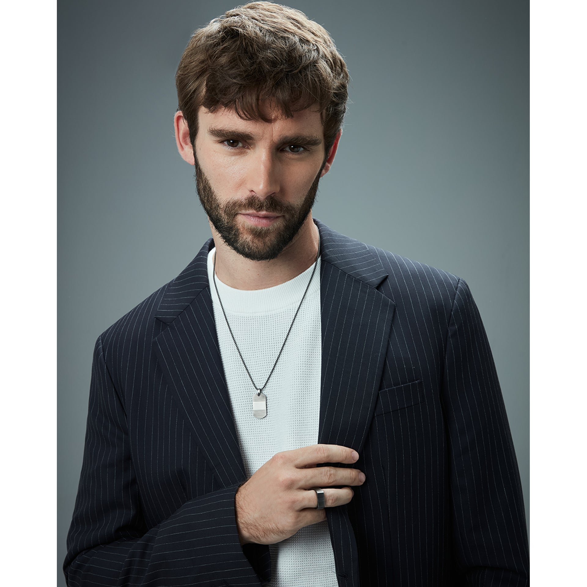 Collar de hombre de acero y barra colgante colección Laura Escanes con diamante creado