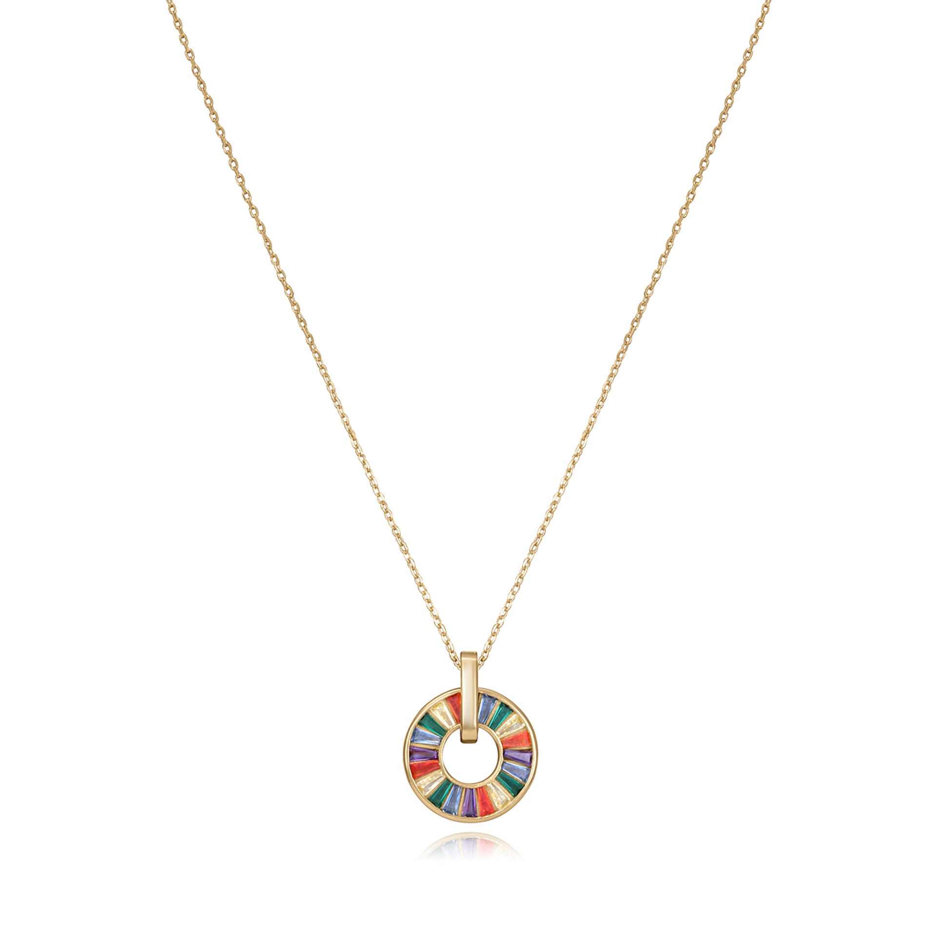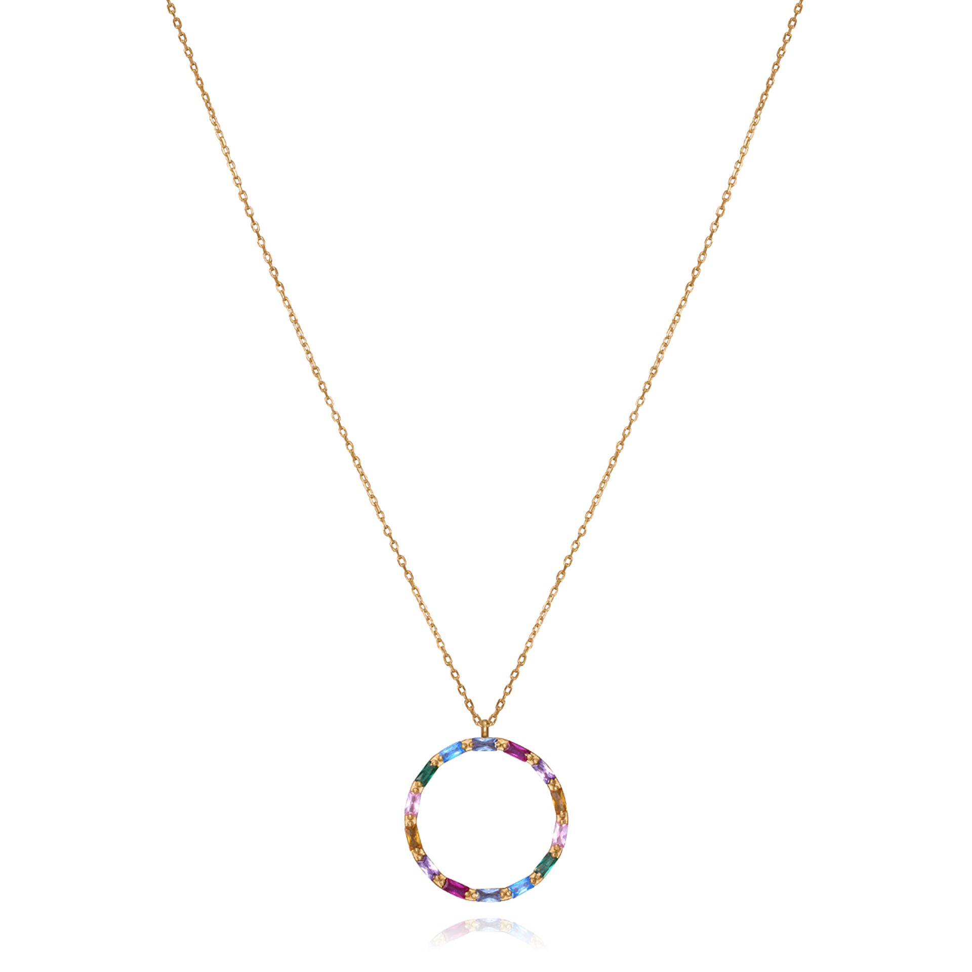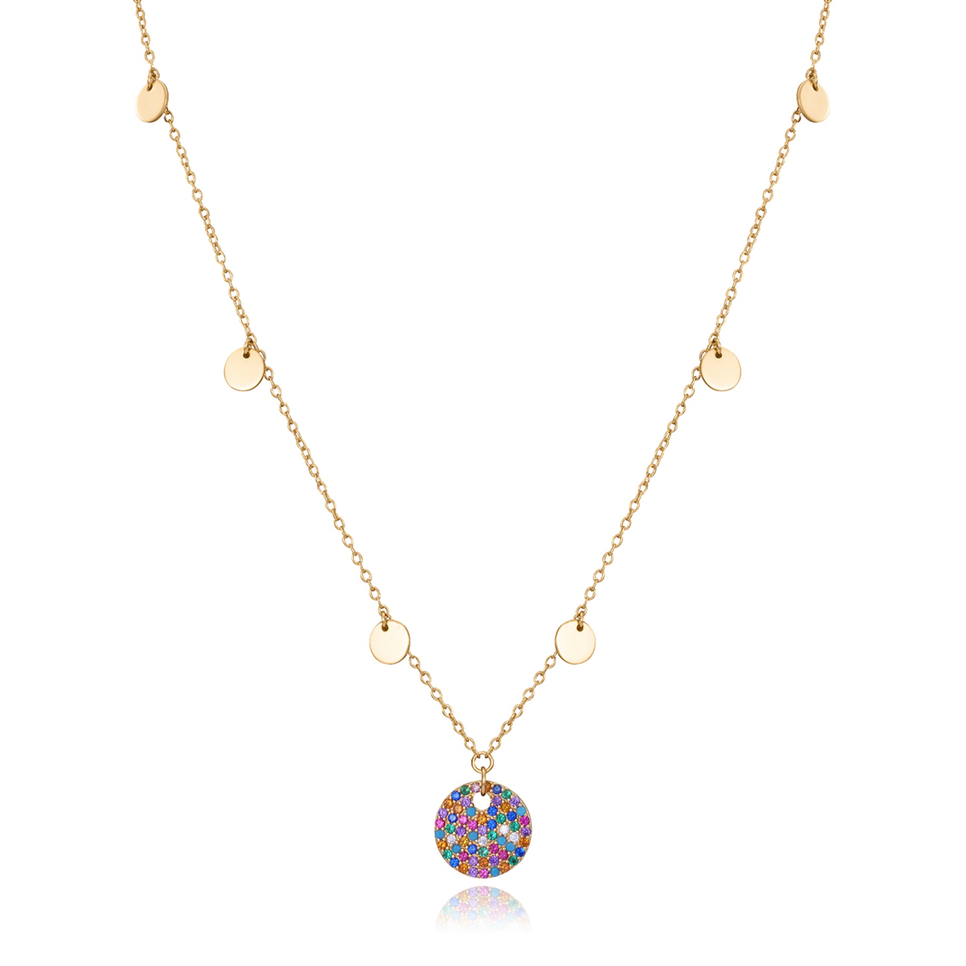Collar Elegant de plata con baño de oro y disco engastado con circonitas de colores