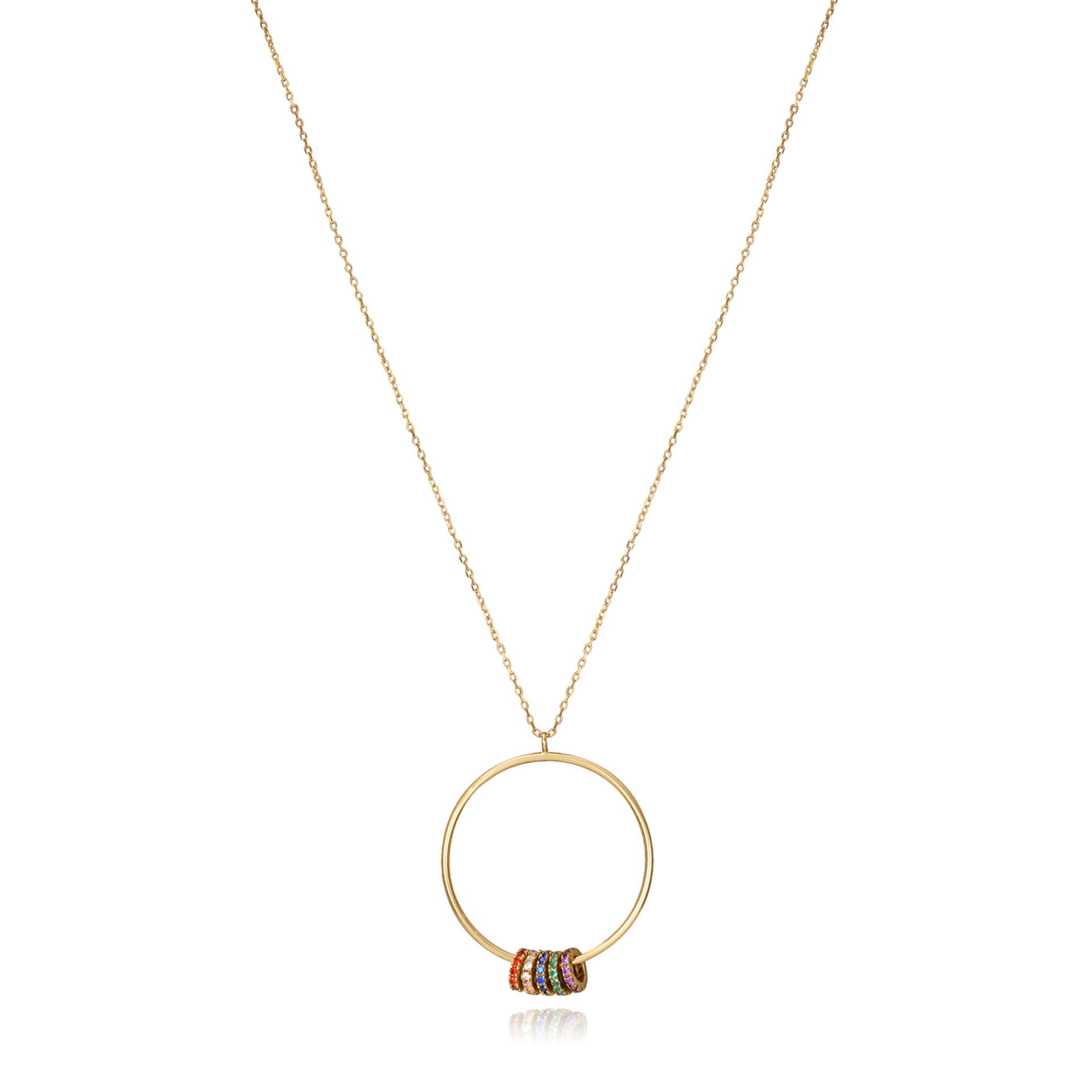 Collar Elegant de plata de ley con baño de rodio y colgante de aro con circonitas de colores