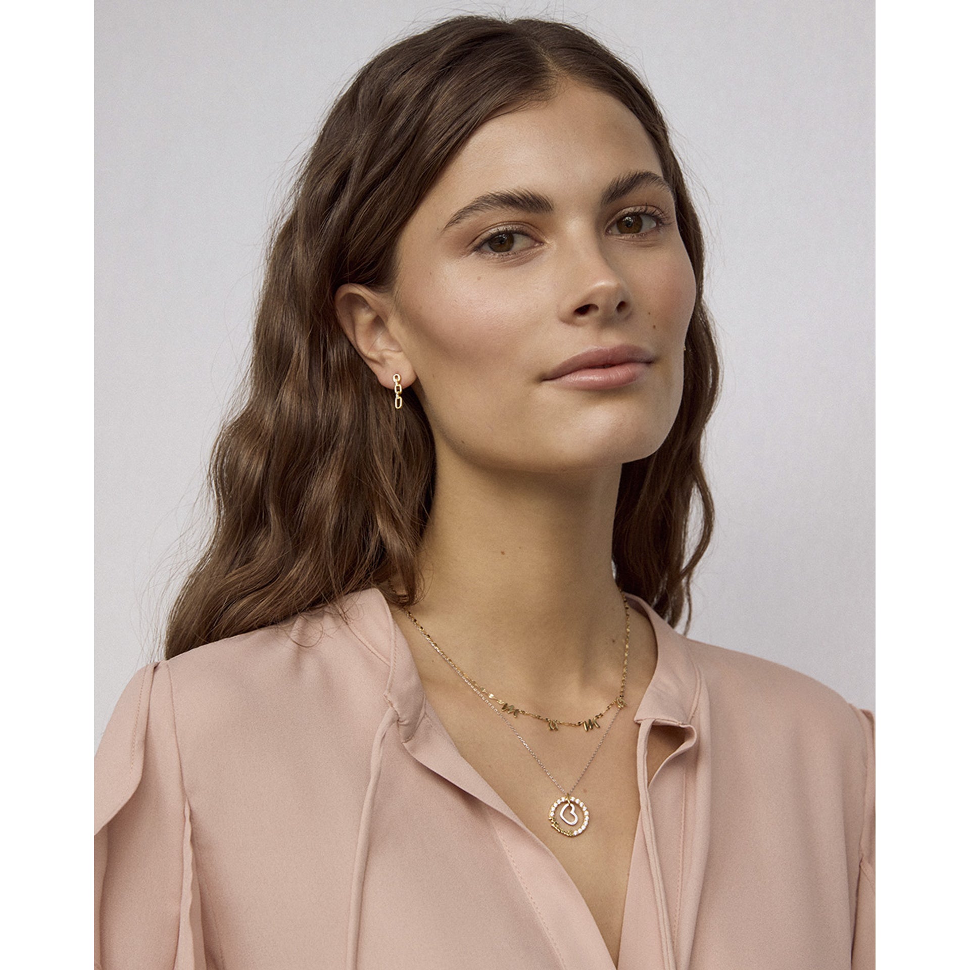 Collar de plata de primera ley con baño de oro con circonitas blancas y dos aros enlazados