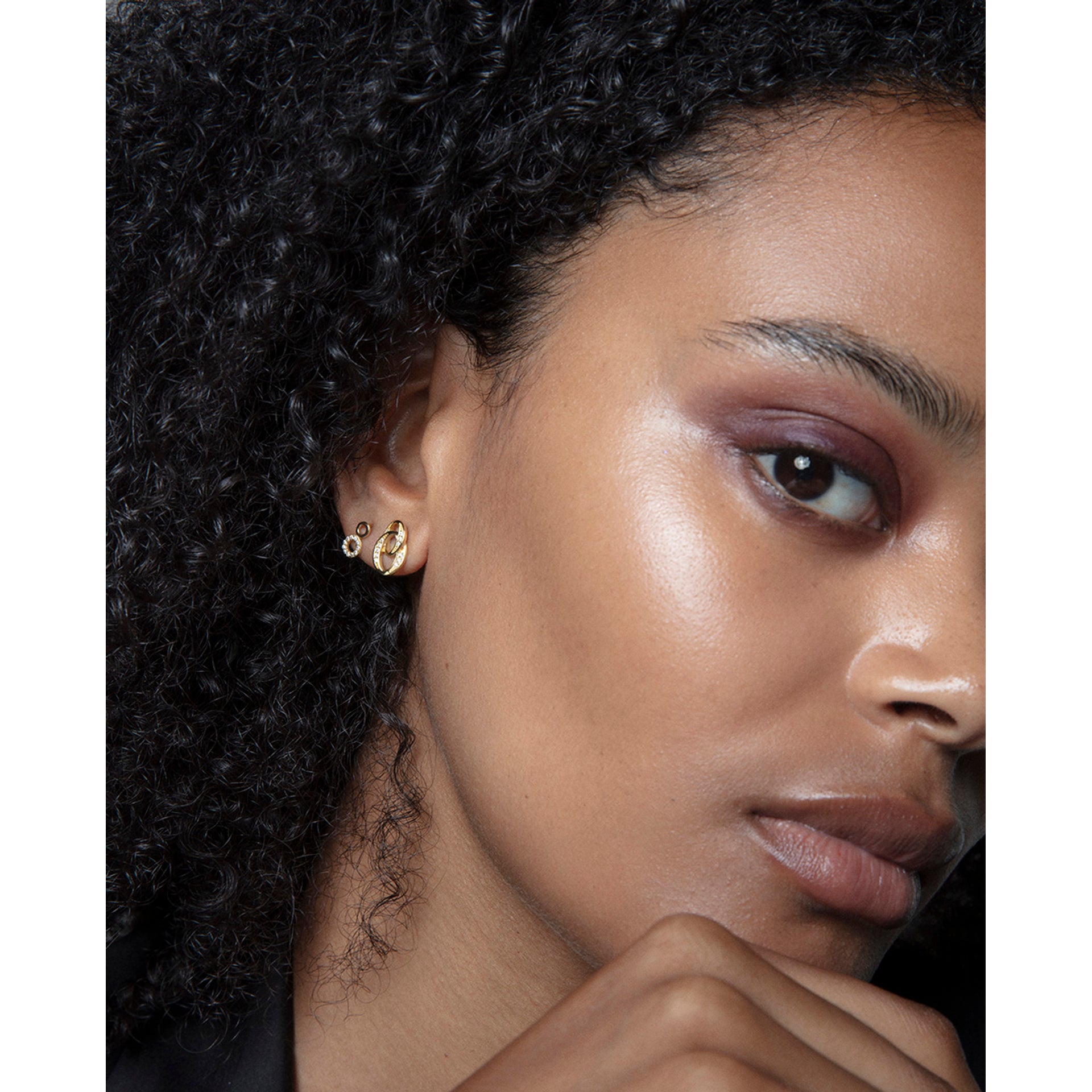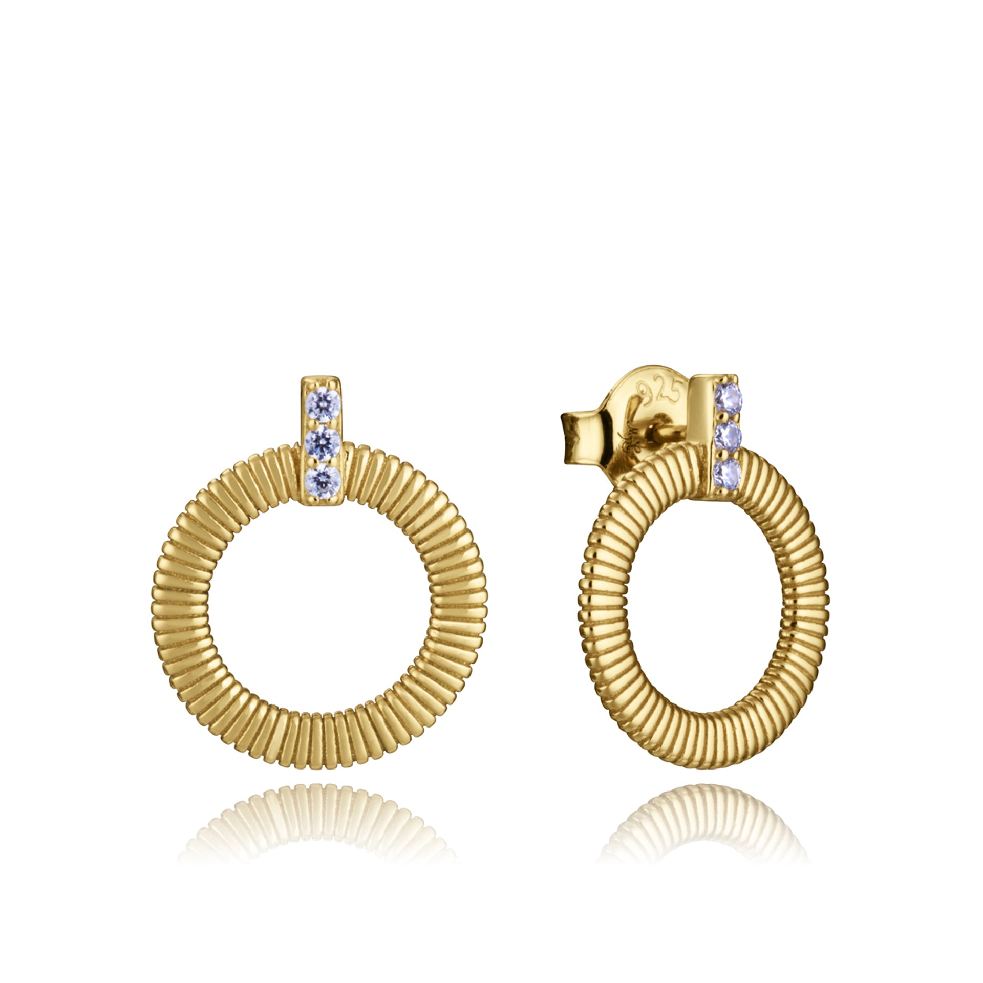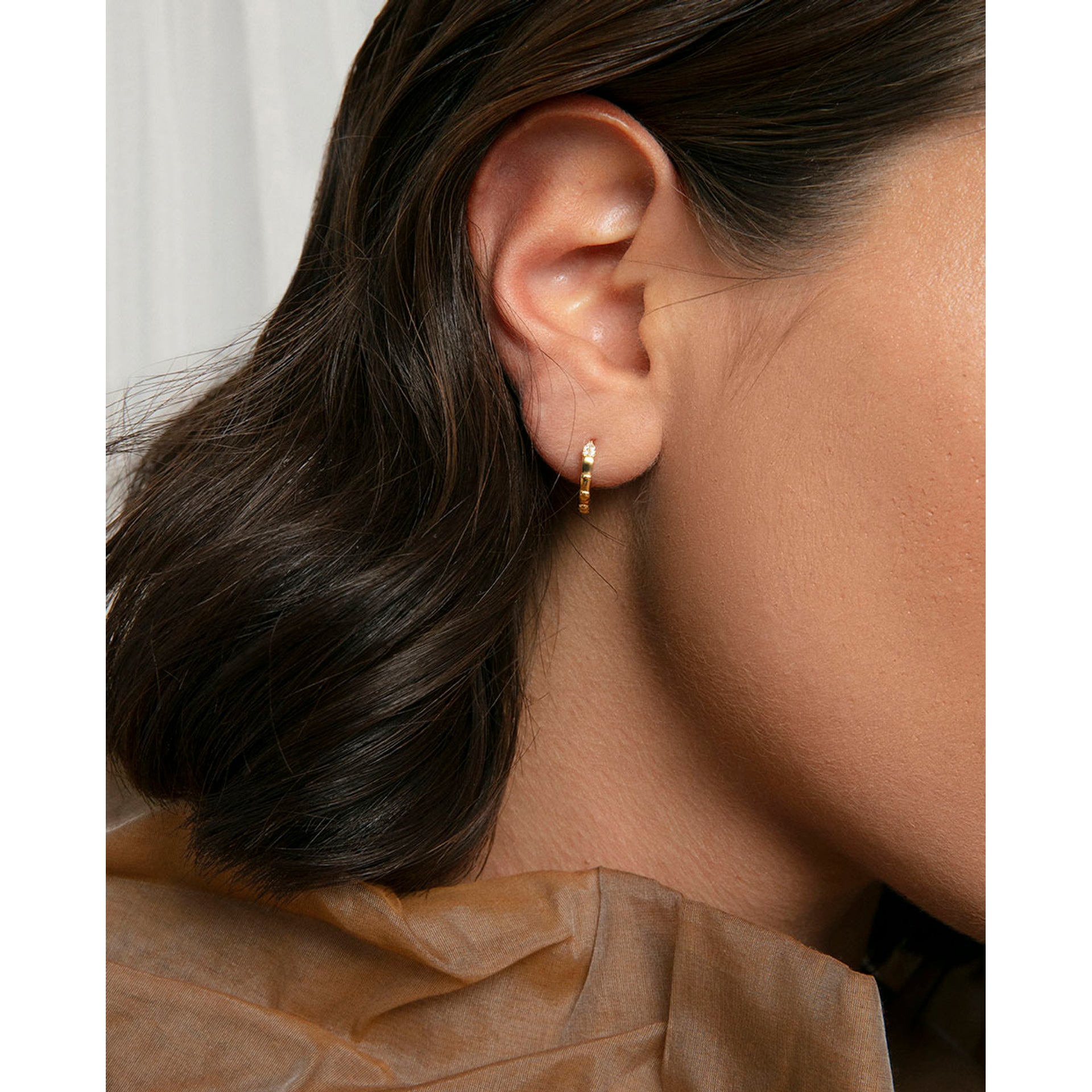 Pendientes de plata de primera ley con baño de oro con fila de circonitas blancas y aro