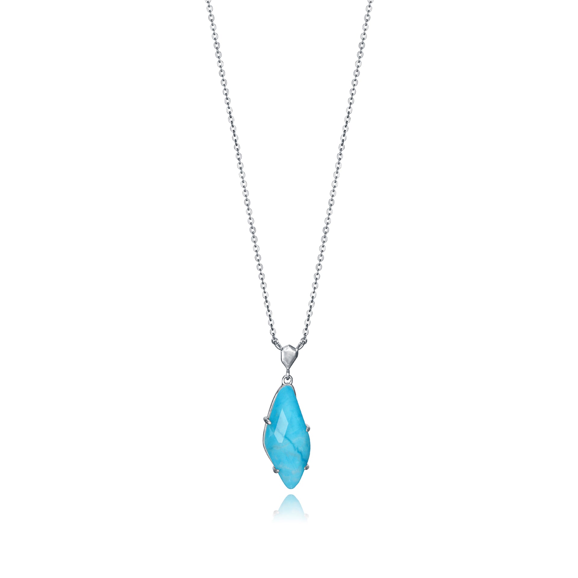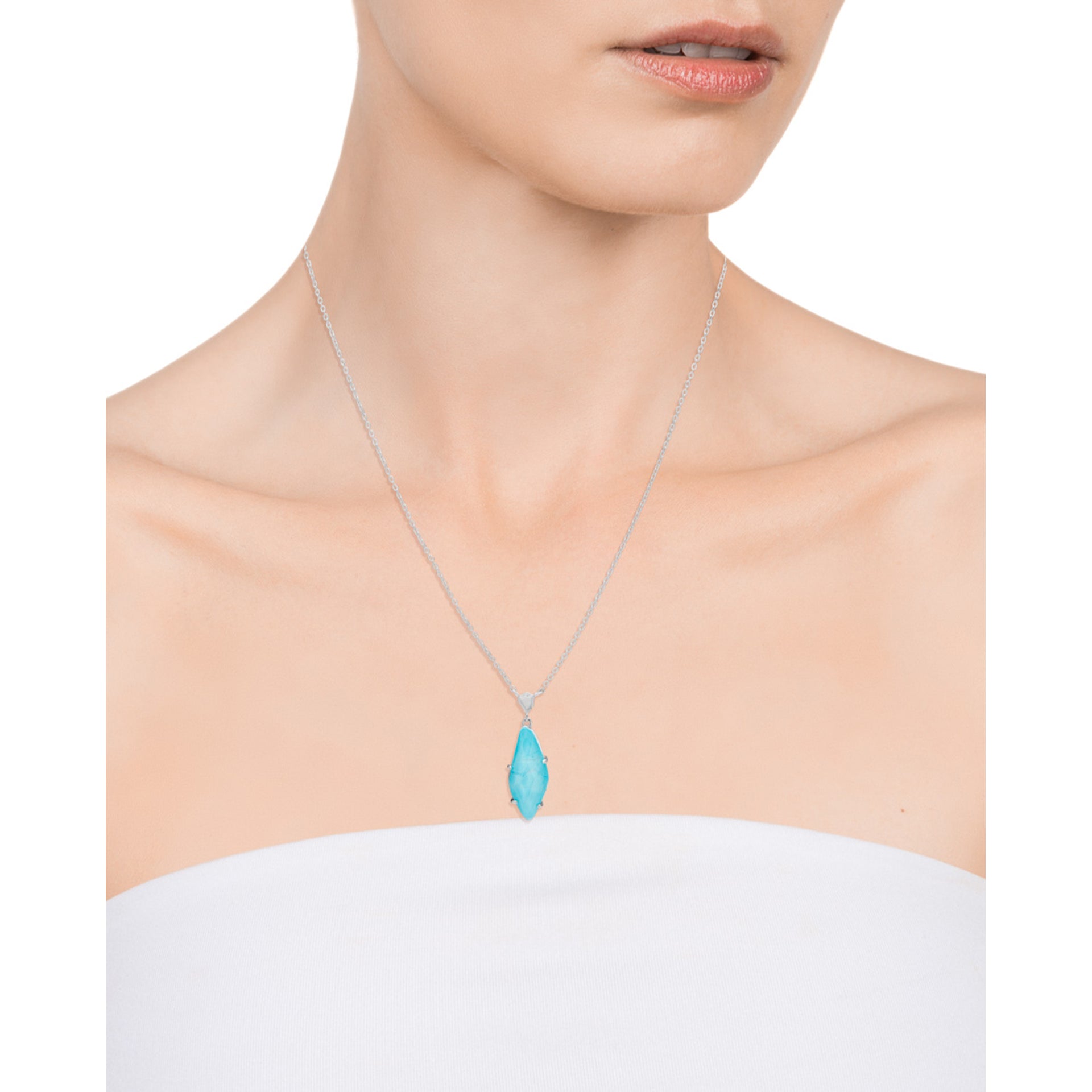 Collar de plata de ley con baño de oro y colgante con piedras de turquesa y cristal
