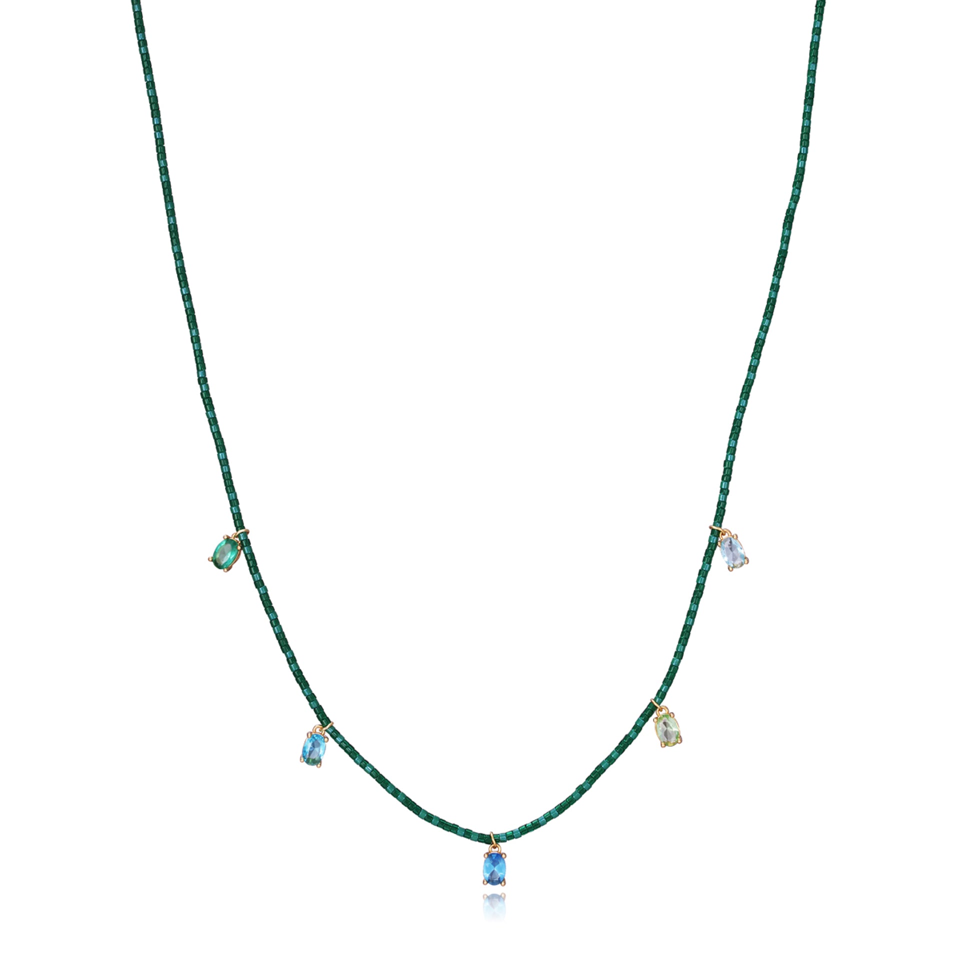 Collar Trend de plata de ley bañado en oro con cristales verdes y azules