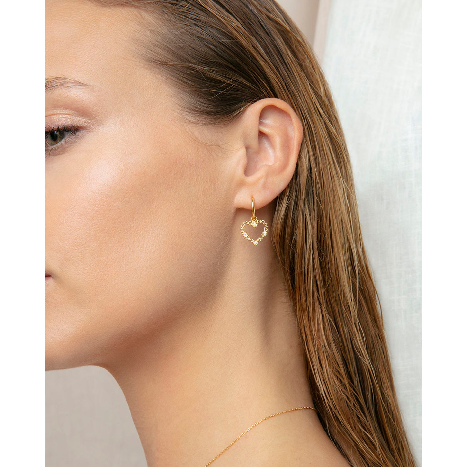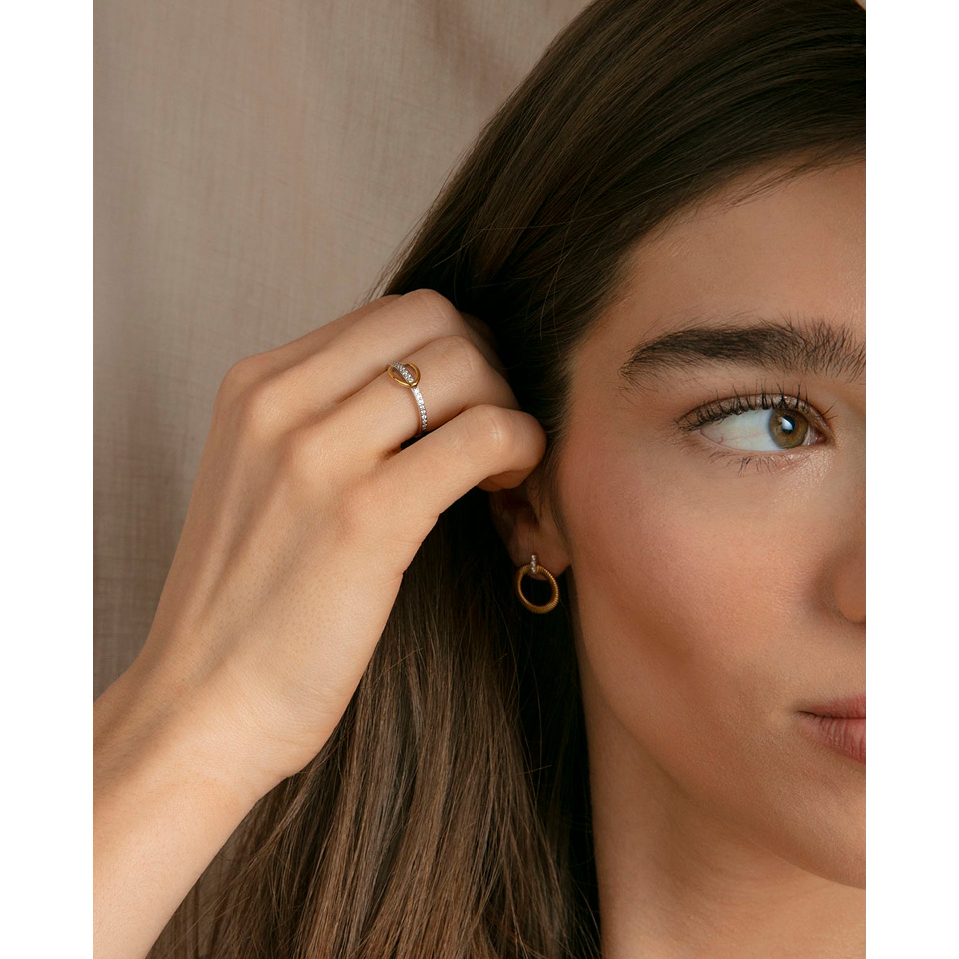 Pendientes Elegant de plata de ley con baño de oro y dos aros de diferentes tamaños con circonitas