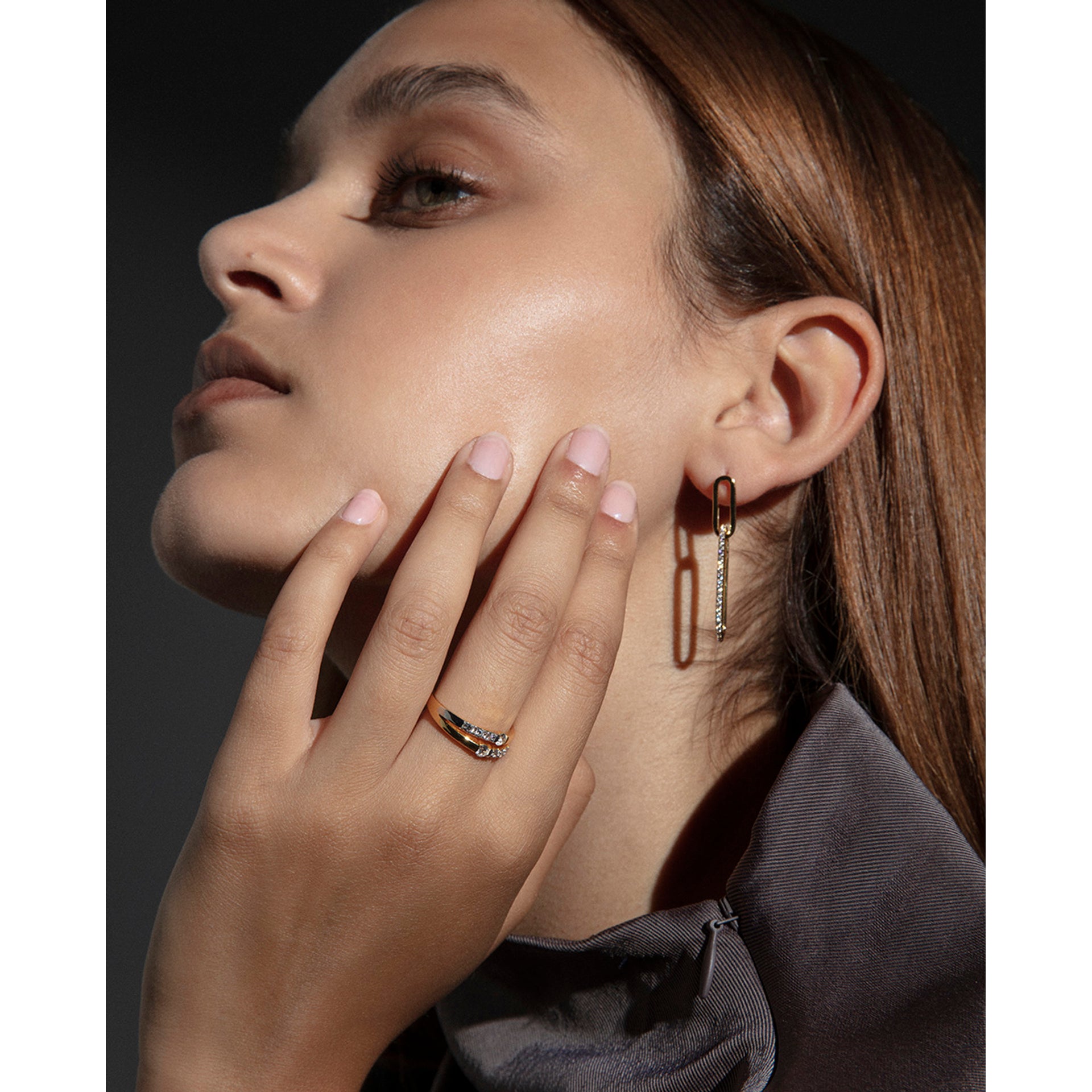 Anillo doble de plata de ley con baño de oro y circonitas blancas