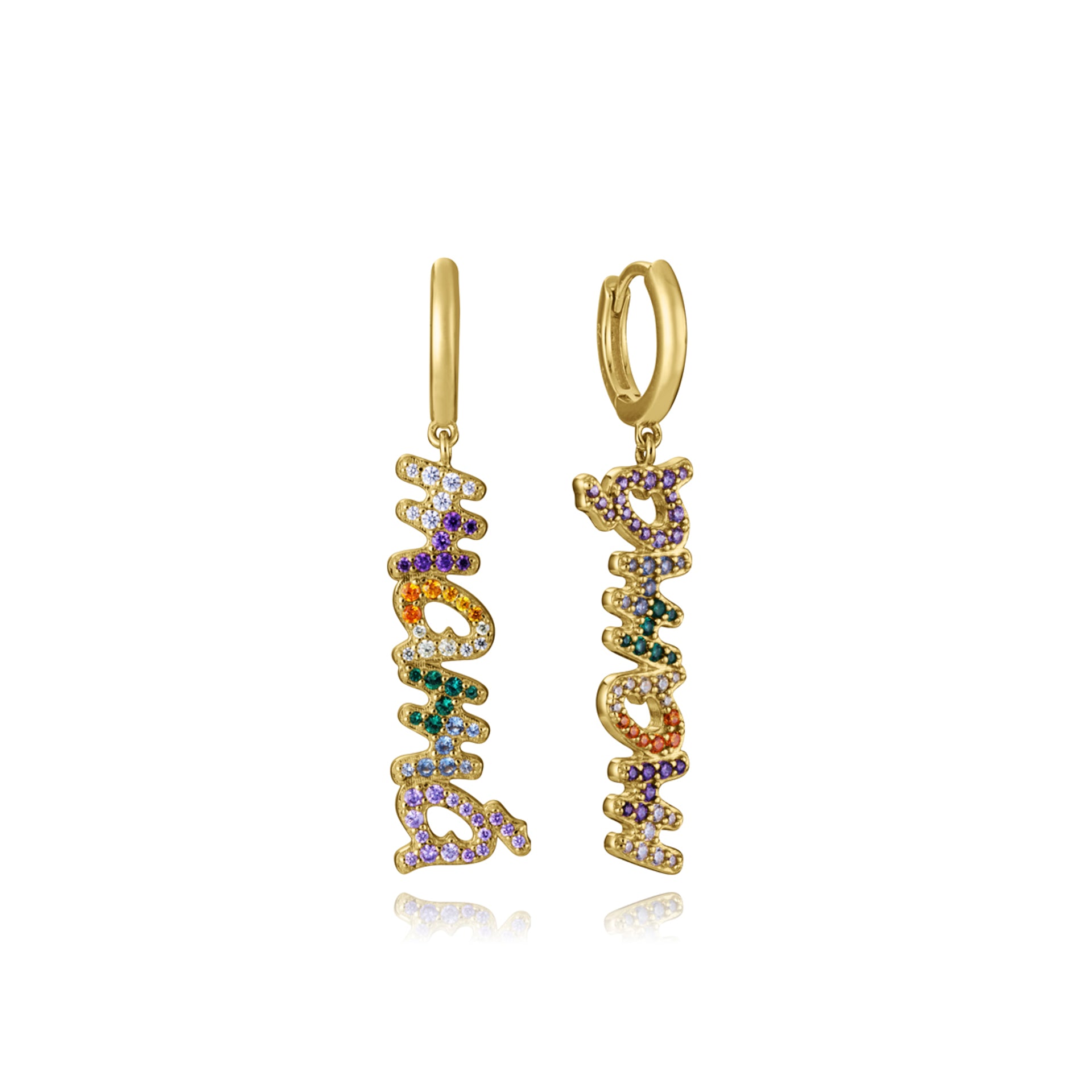 Pendientes de plata de primera ley con baño de oro "Mamá"