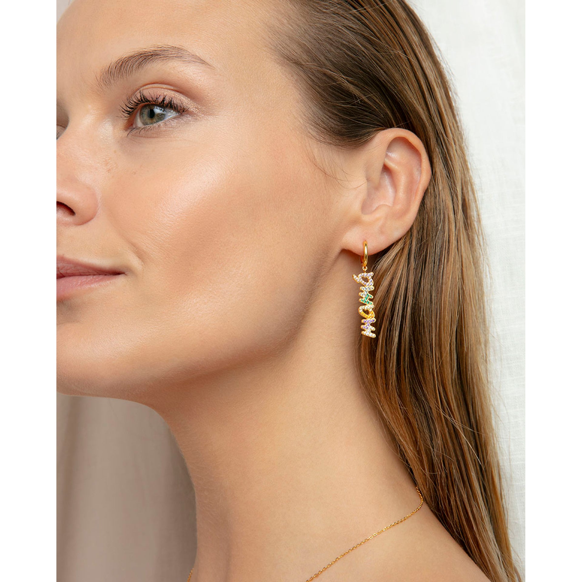 Pendientes Elegant de plata de ley con baño de oro y circonitas de color rosas y verdes