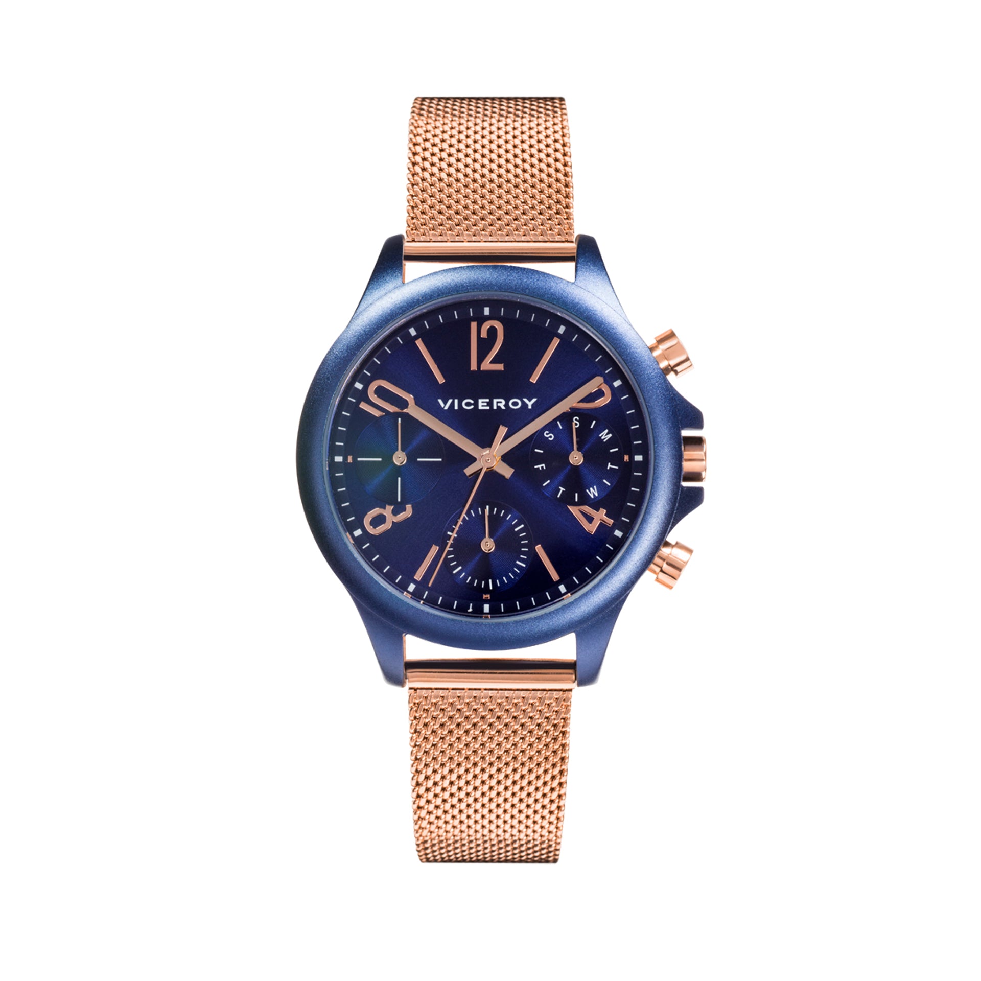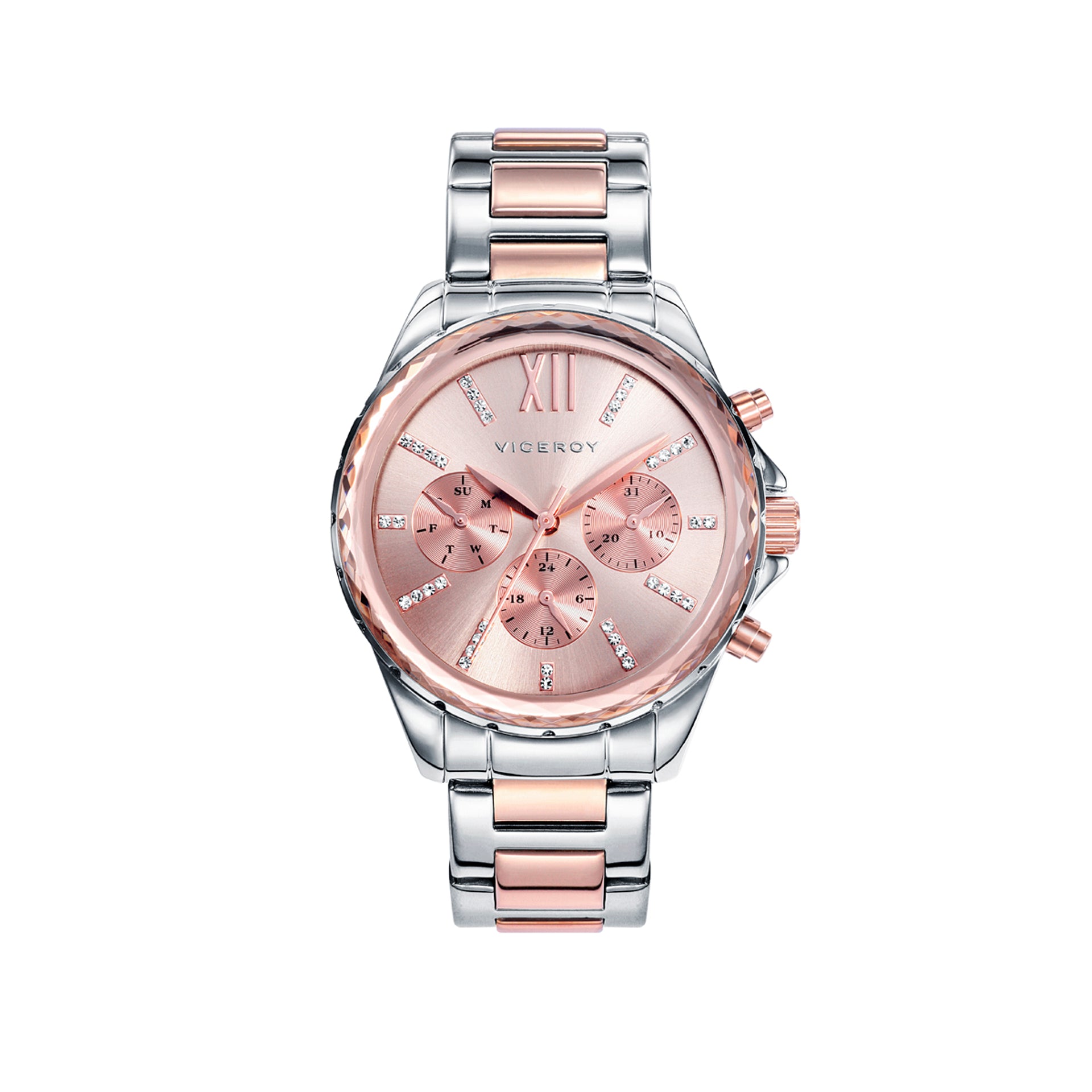 Reloj de mujer Chic multifunción de acero con IP rosa