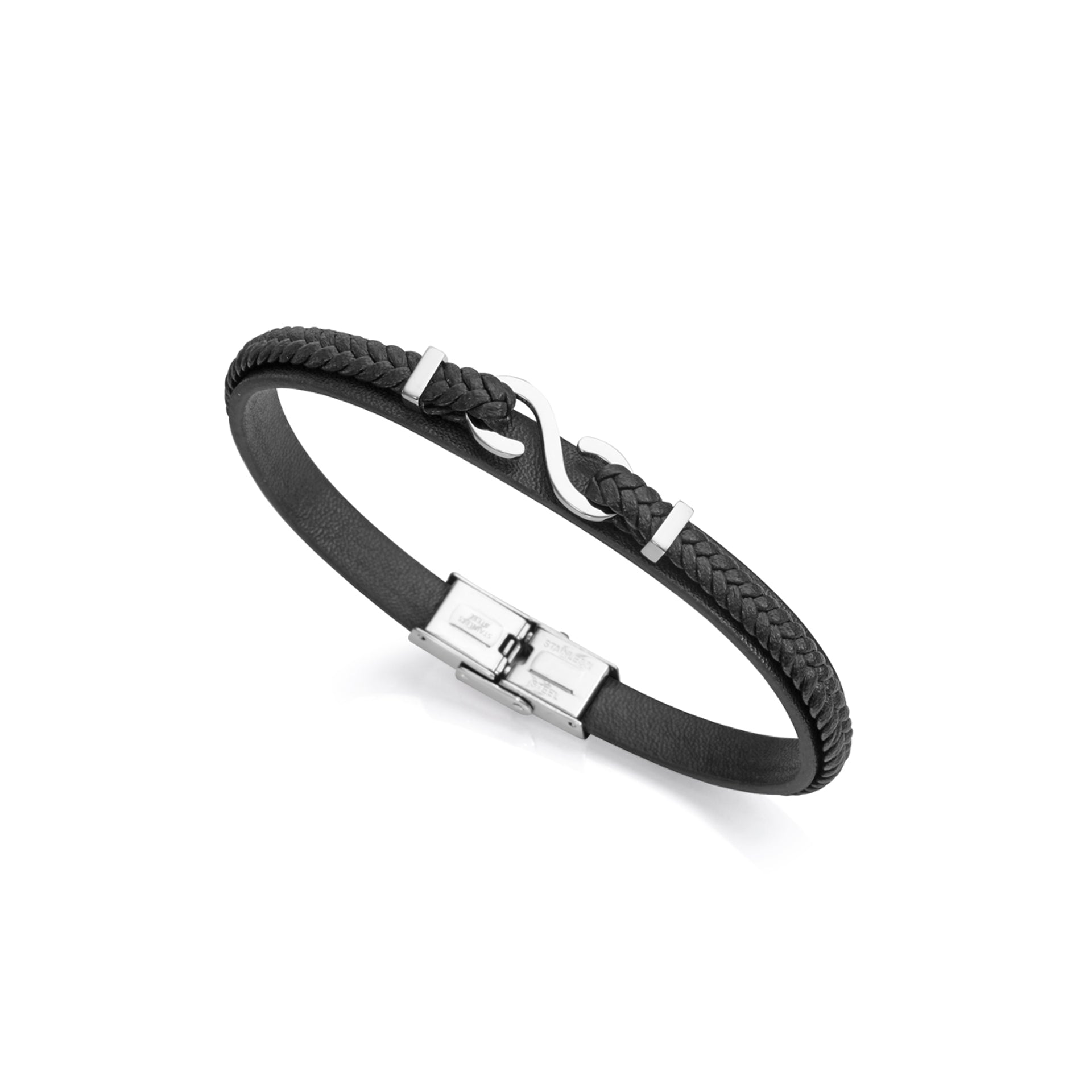 Pulsera de piel negra y marrón para hombre con motivo cordón negro y detalles en acero