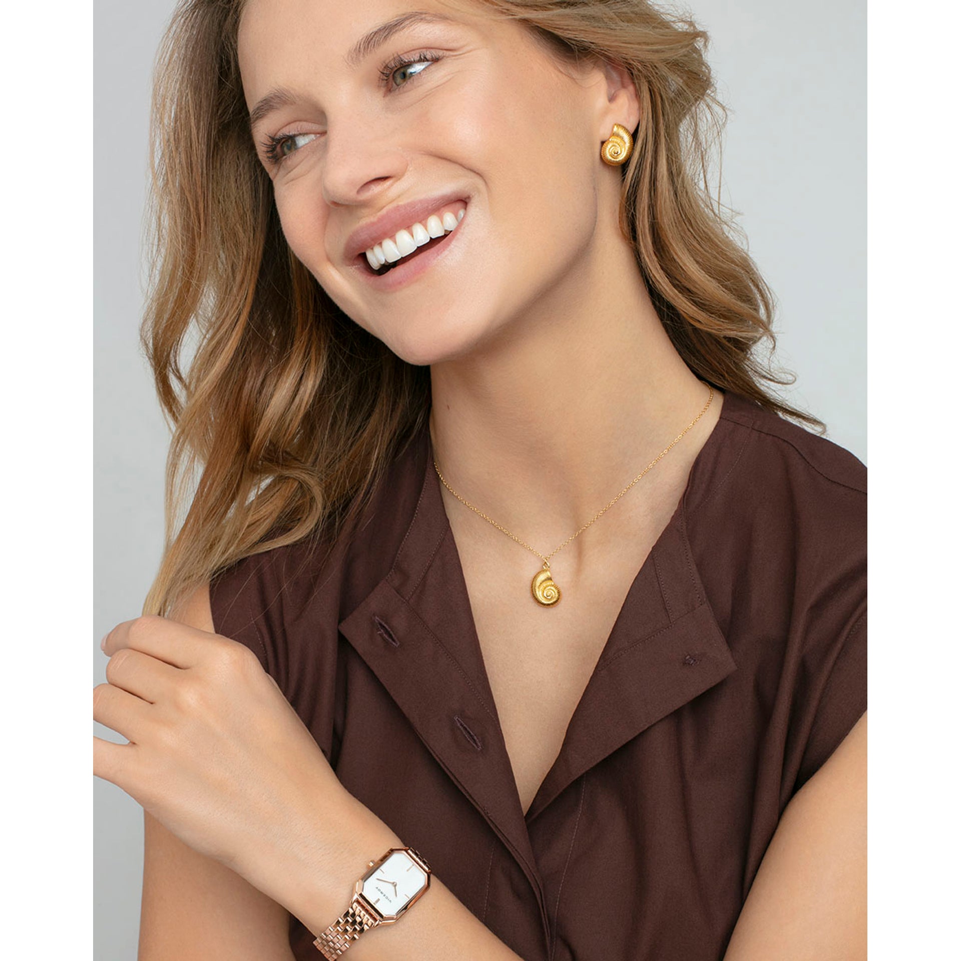 Collar de mujer de acero Ip dorado con colgantes de concha natural, piedra sintética y acero