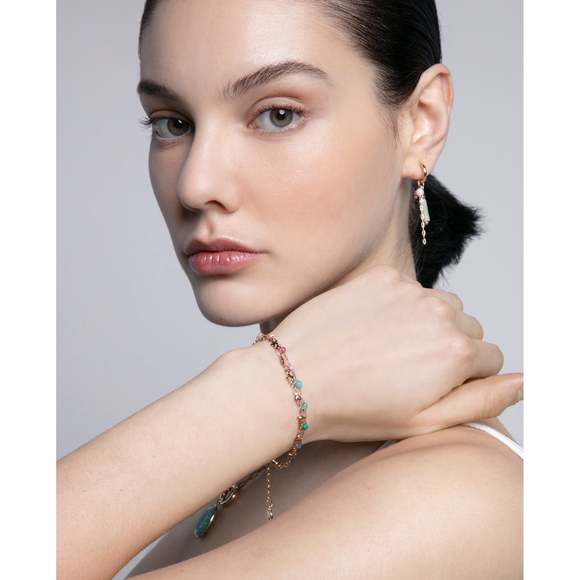 Collar Chic en acero Ip dorado con piedras de colores y aro