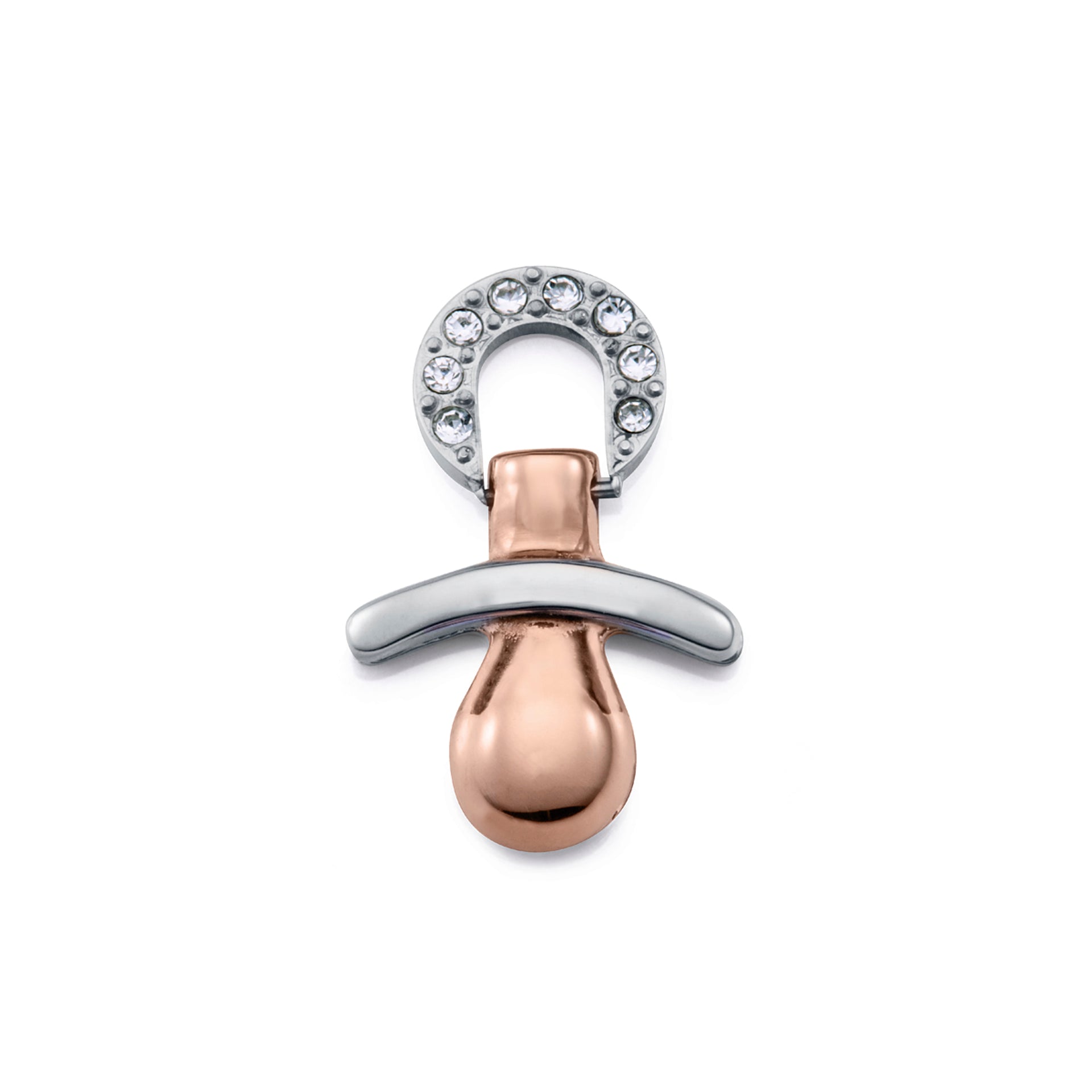 Motivo de mujer de acero e Ip rosa y diseño chupete