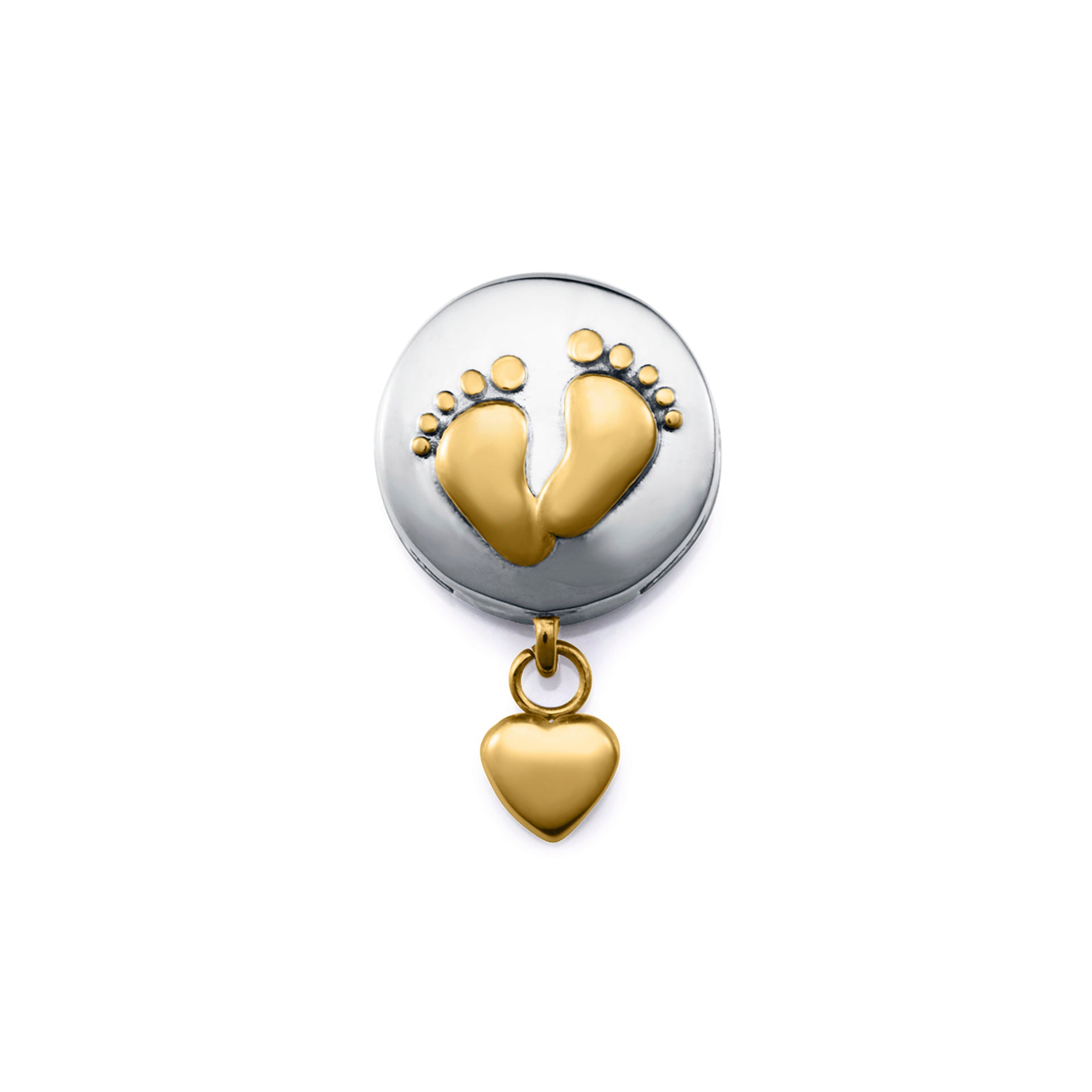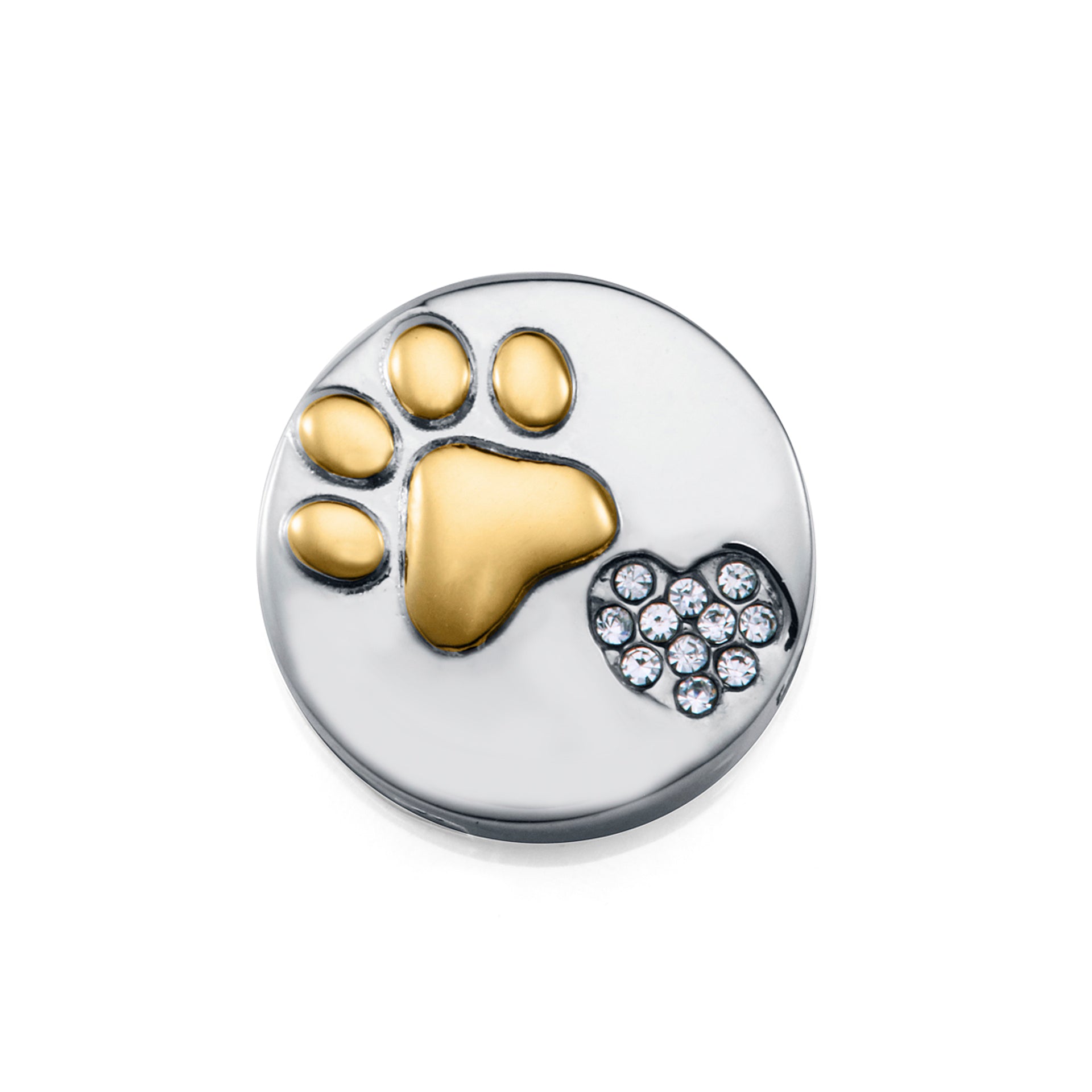 Motivo de mujer de acero e Ip dorado con huella animal y corazón