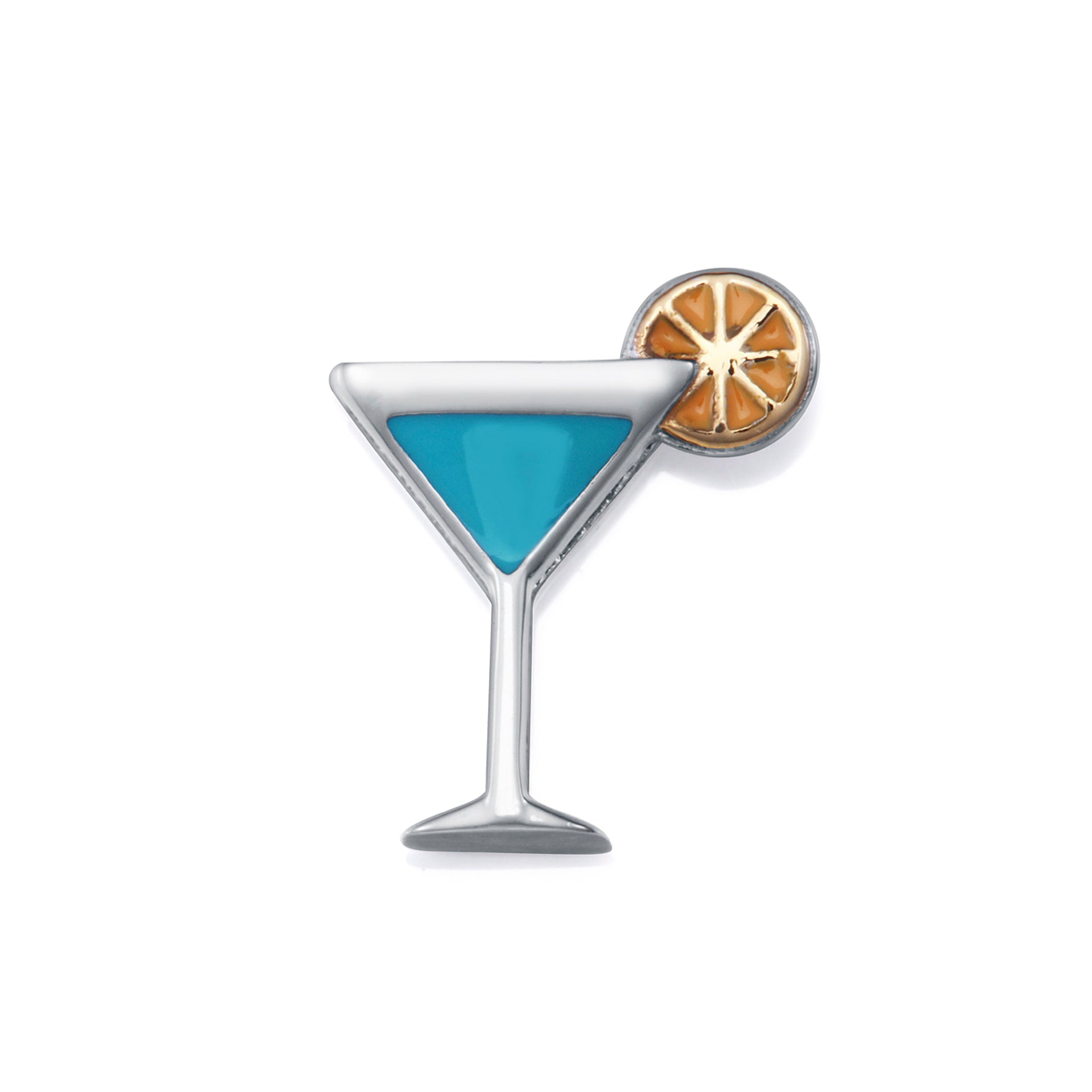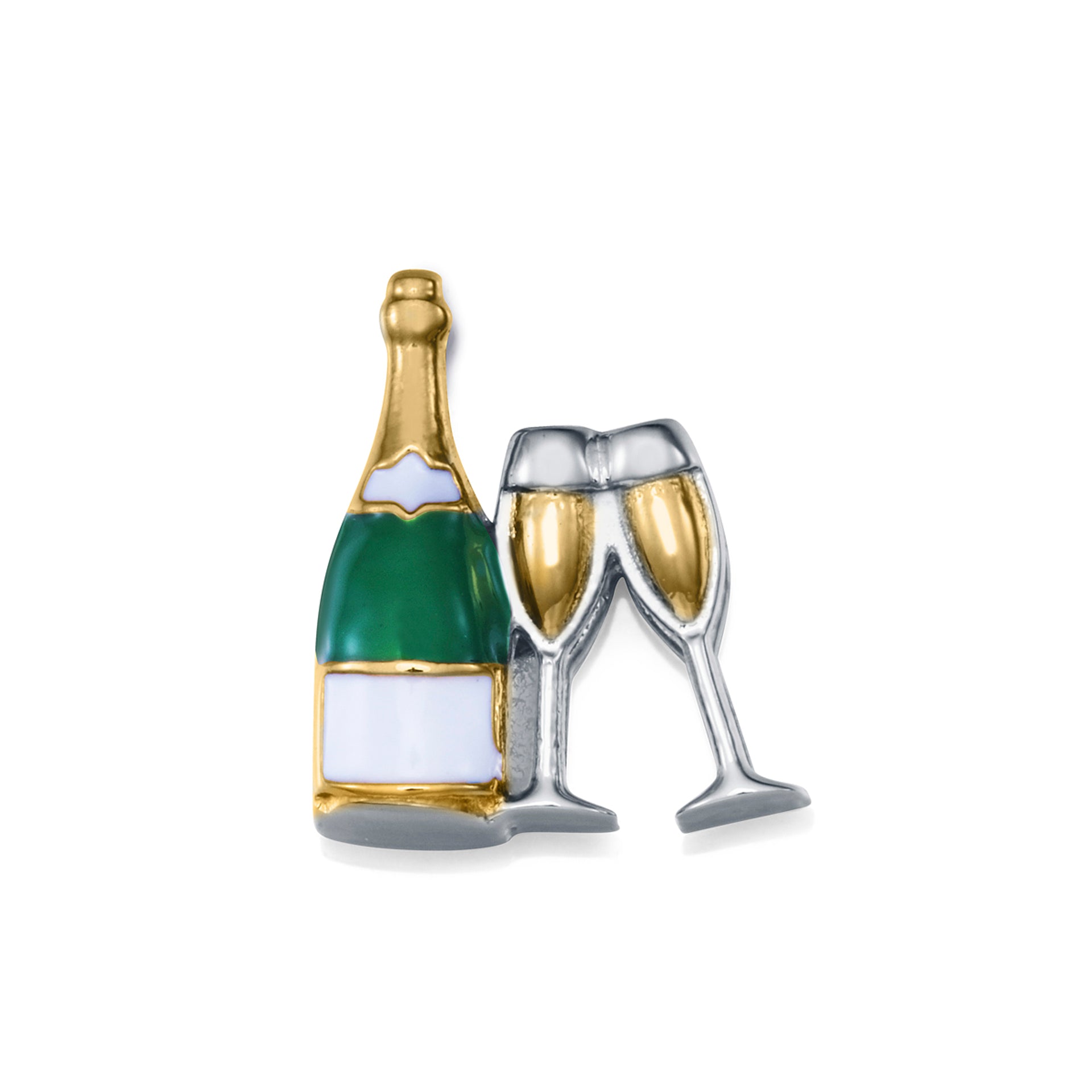 Motivo de mujer de acero e Ip dorado con botella de cava y copas