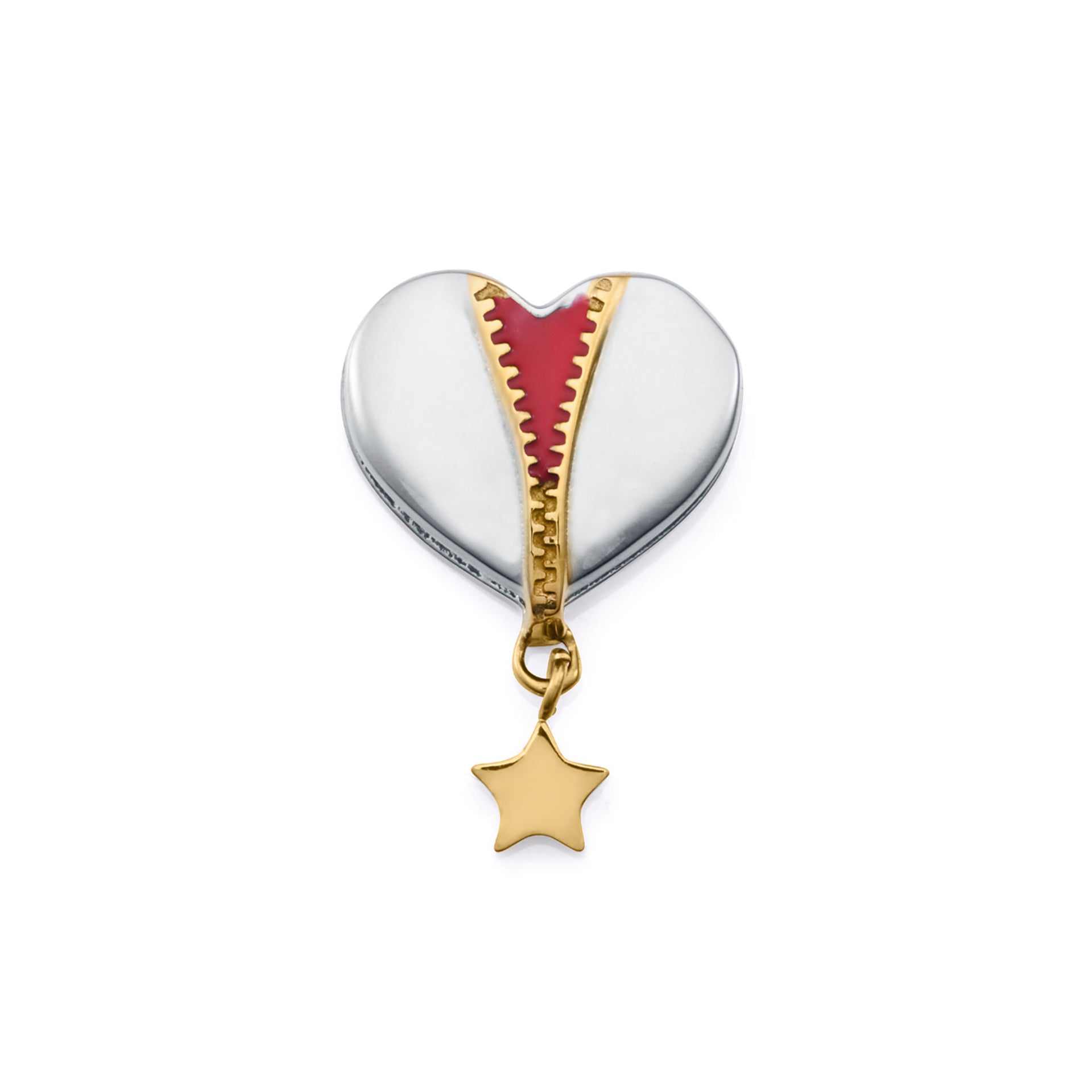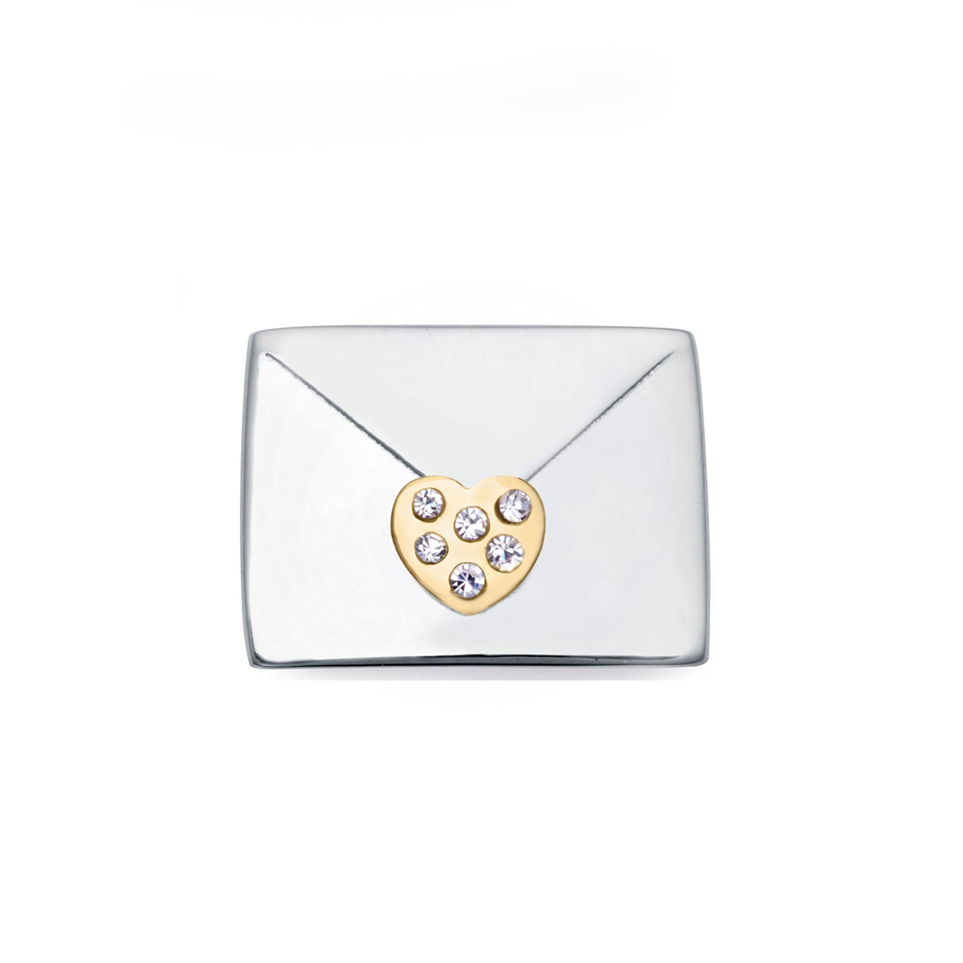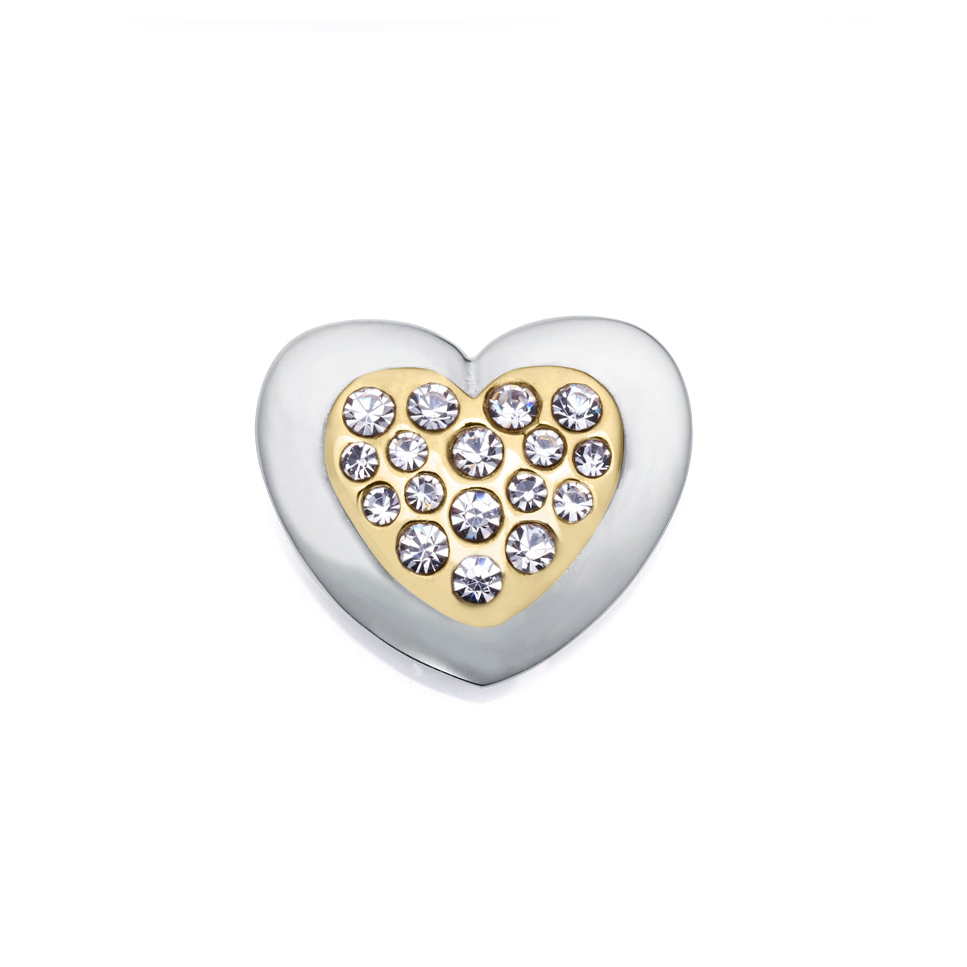 Motivo Chic de acero con corazón en Ip dorado y circonitas blancas