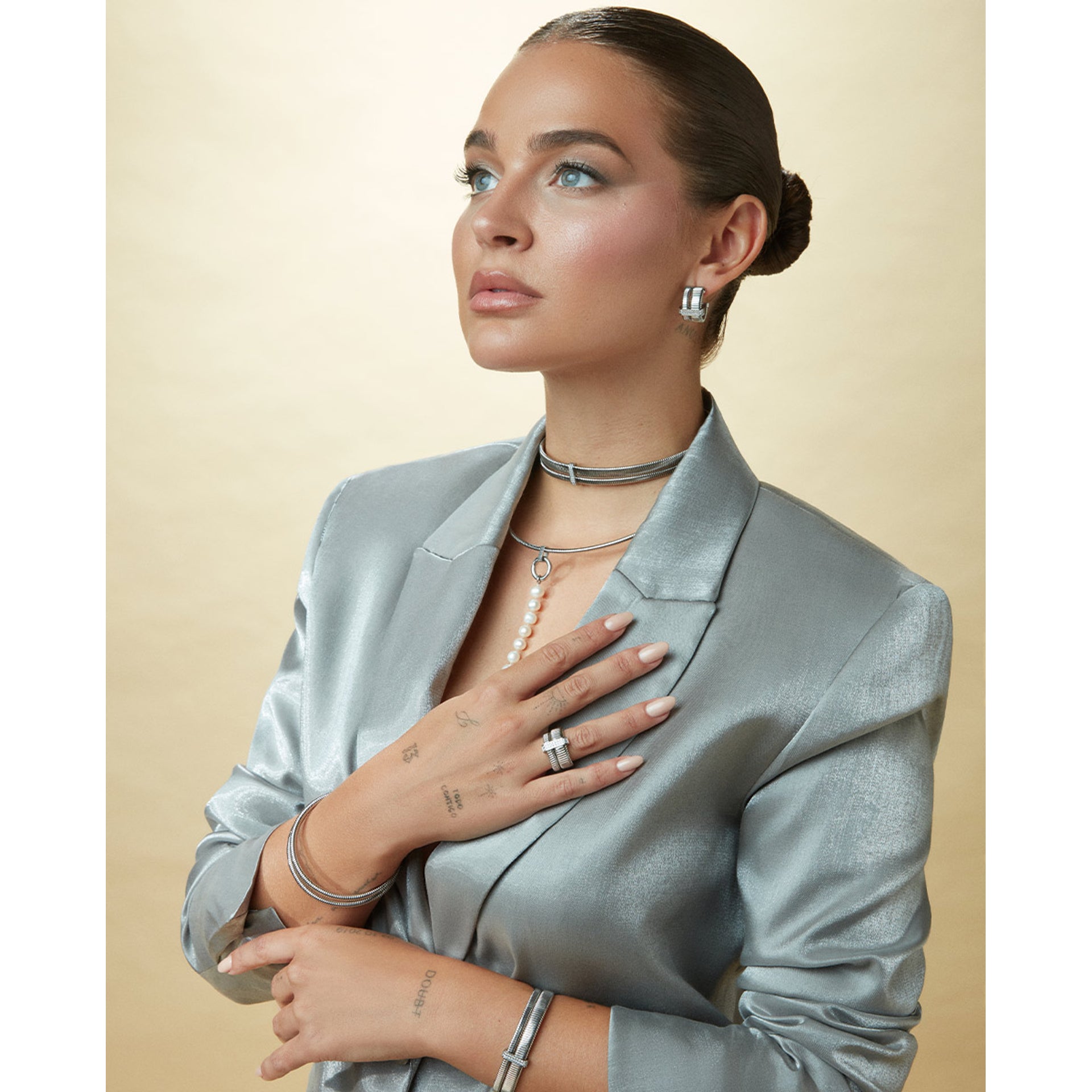 Collar Elegant de plata de ley con aro con circonitas y colgante de perla cultivada