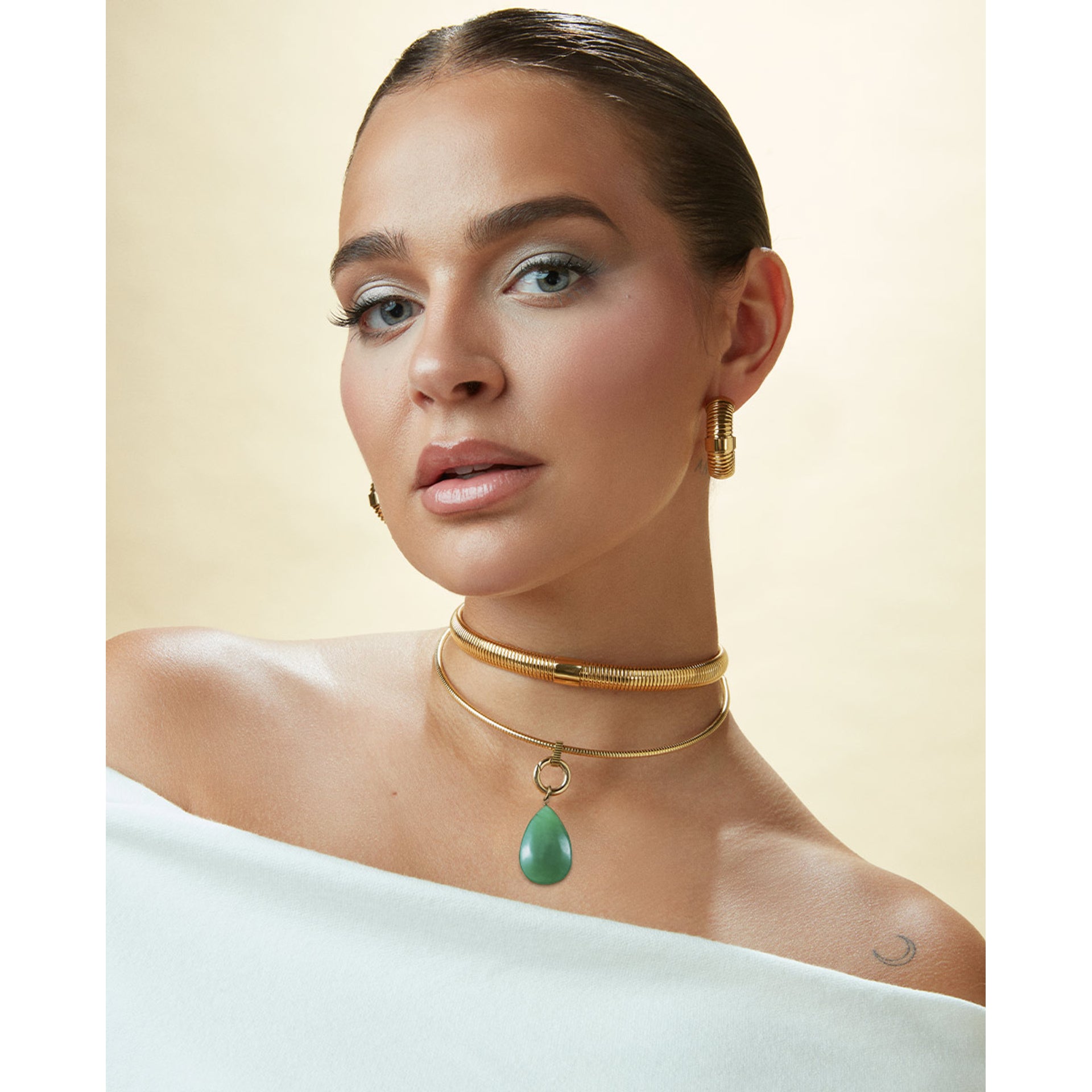 Motivo colgante de acero Ip dorado colección Laura Escanes con piedra natural verde