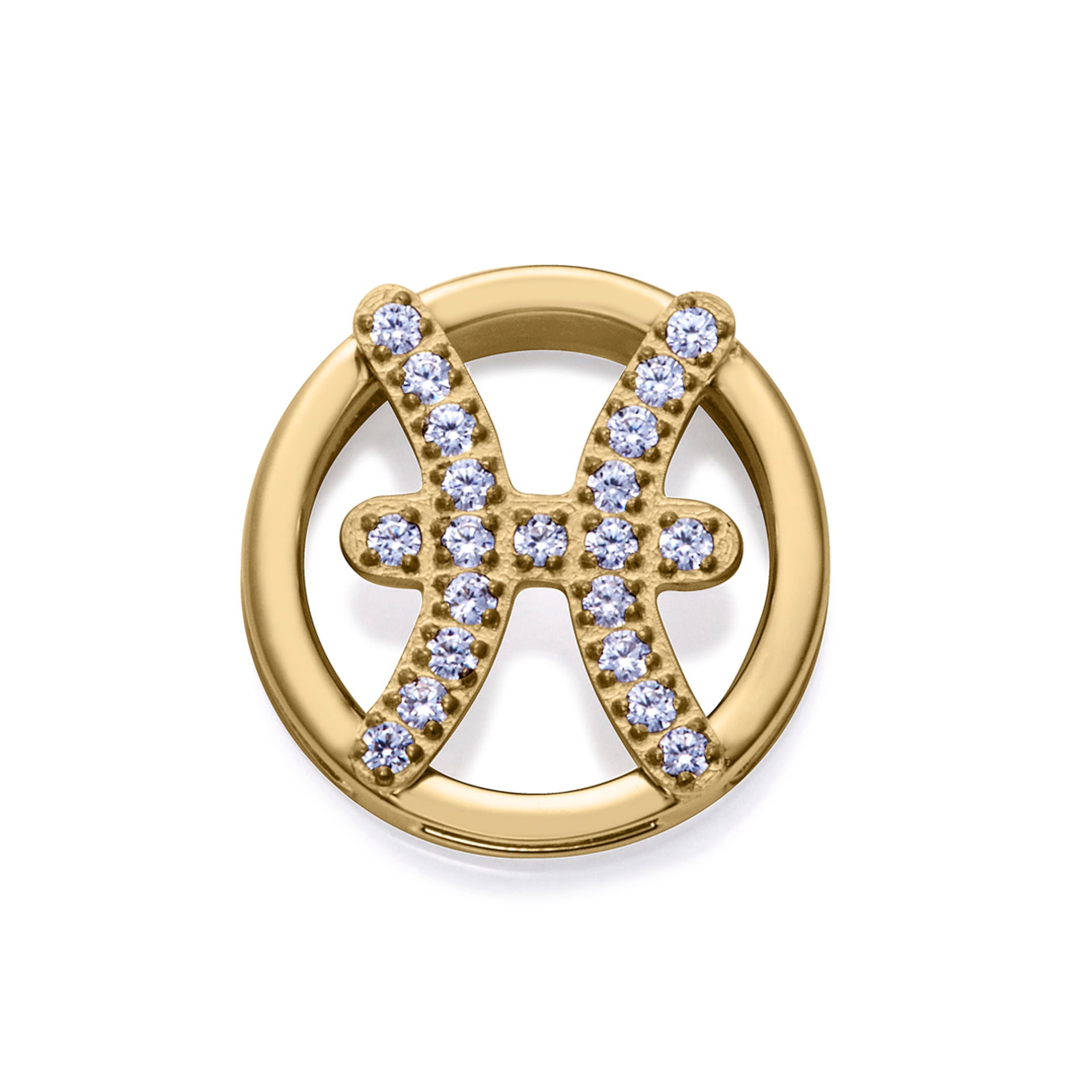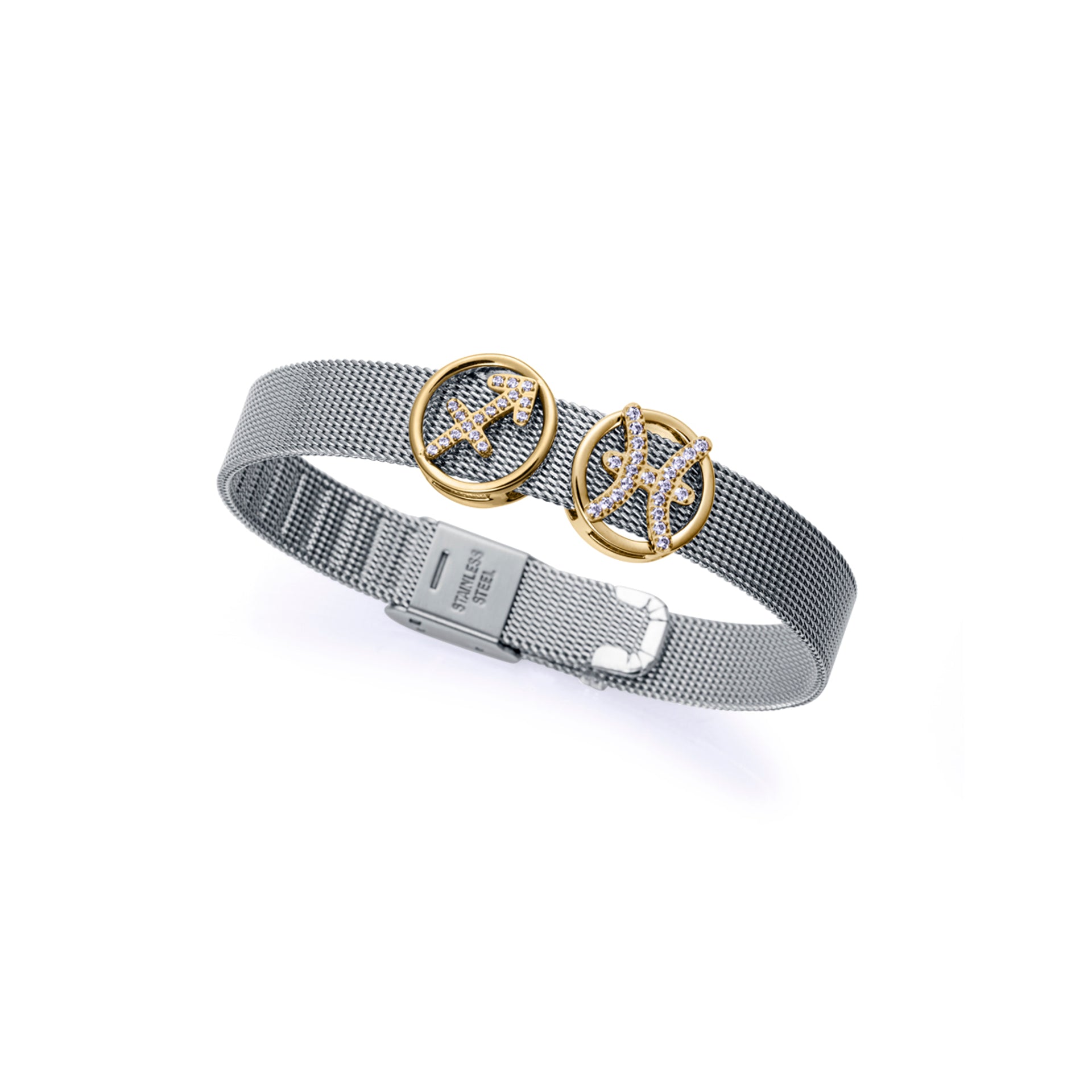 Motivo Horóscopo Piscis de mujer acero Ip dorado con circonitas