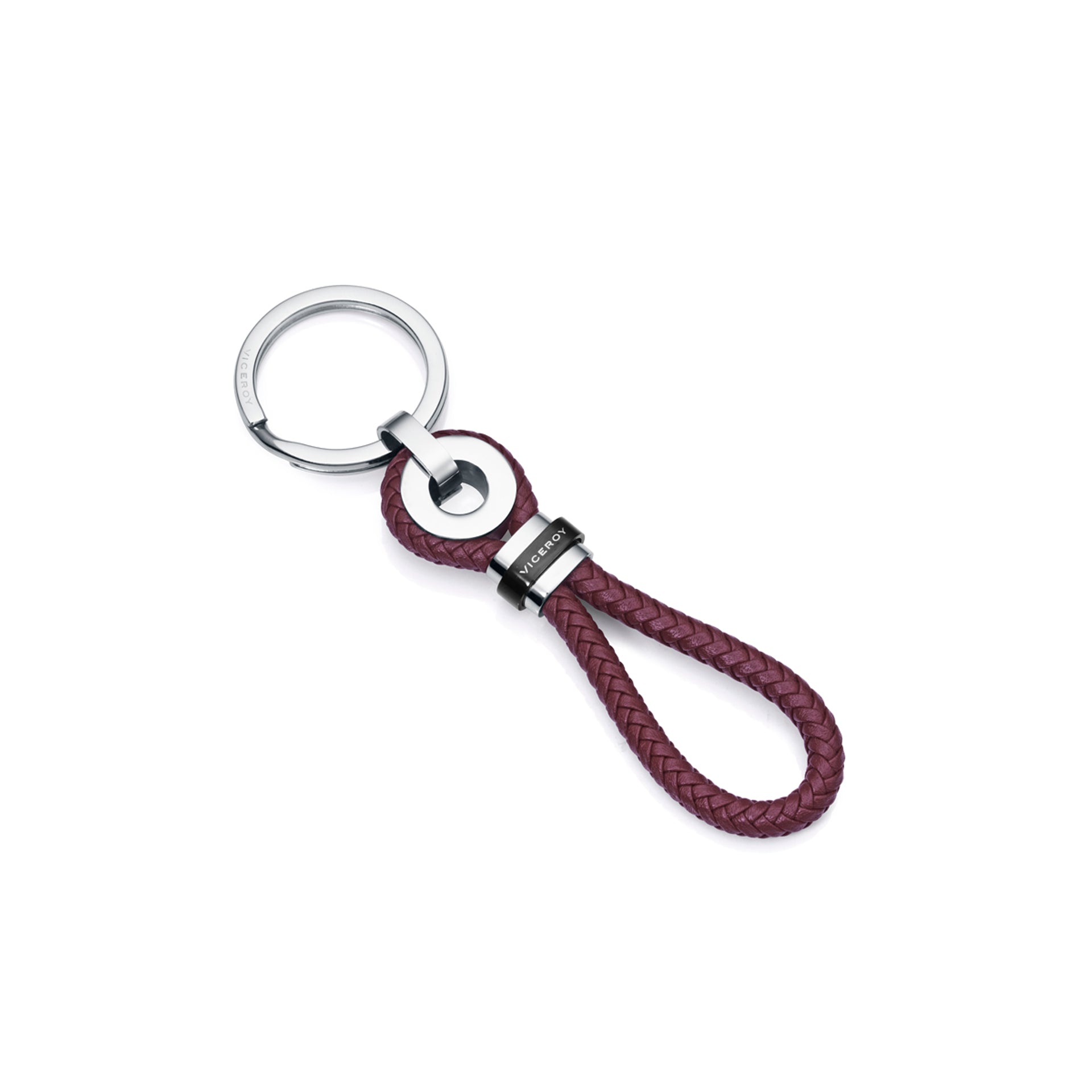 Llavero Air de acero en Ip negro y cuero trenzado en burdeos