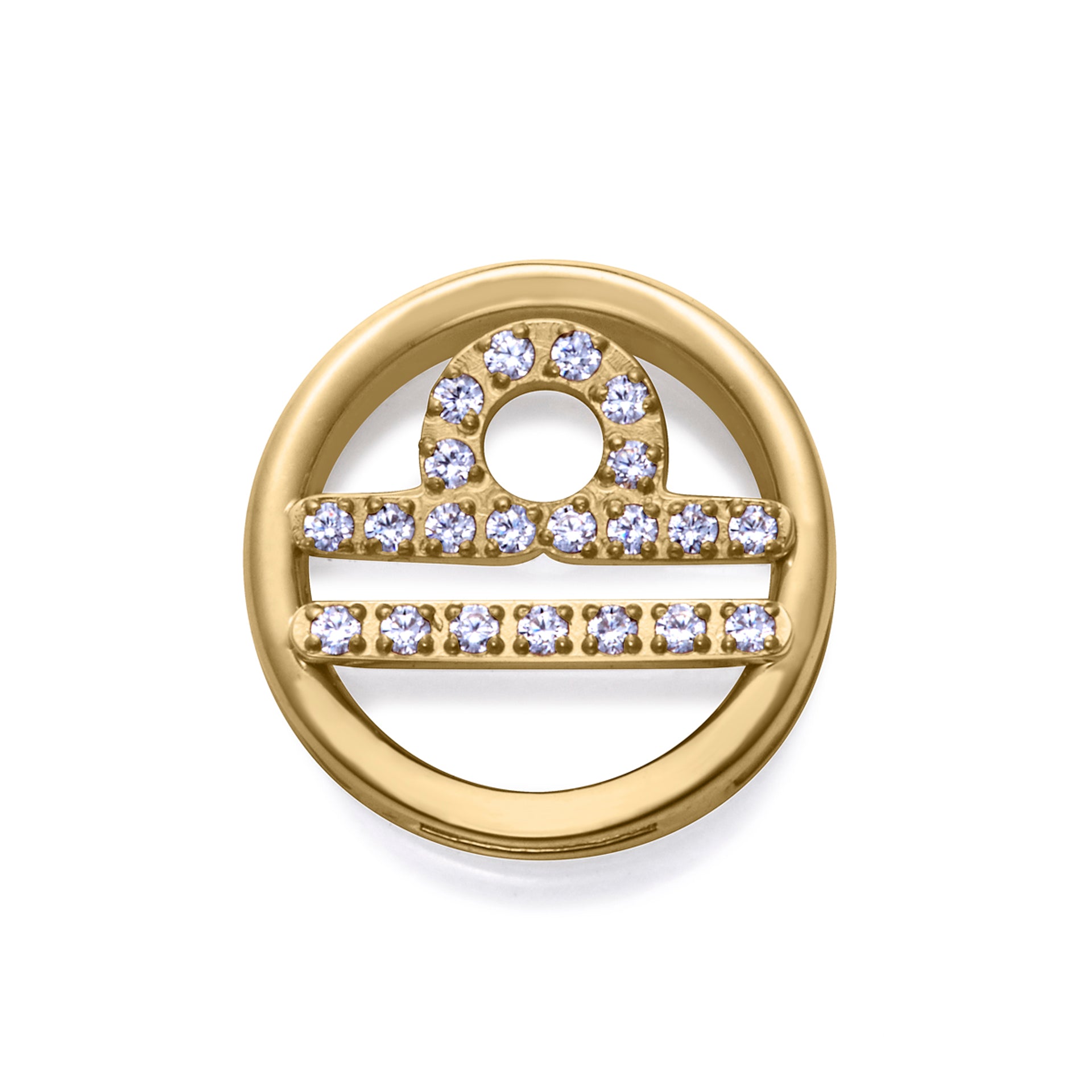 Motivo Horóscopo Libra de mujer acero Ip dorado con circonitas