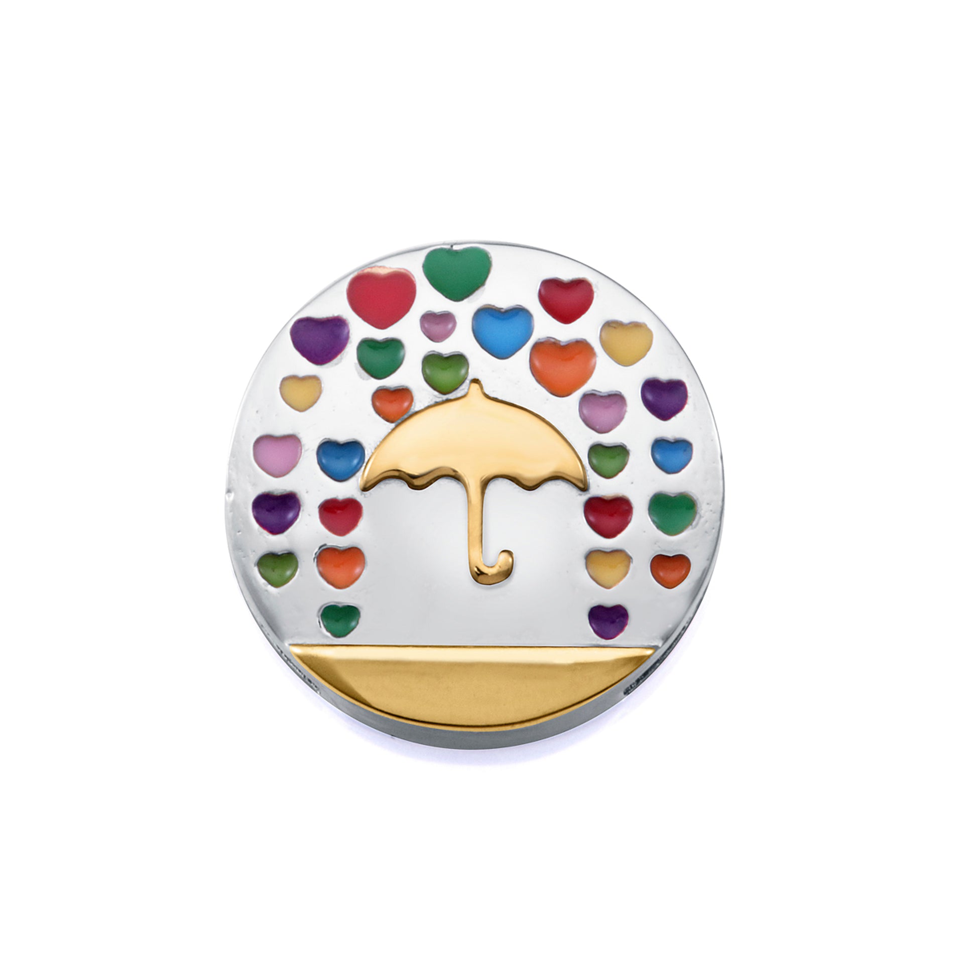 Motivo de mujer de acero e Ip dorado con corazones y paraguas