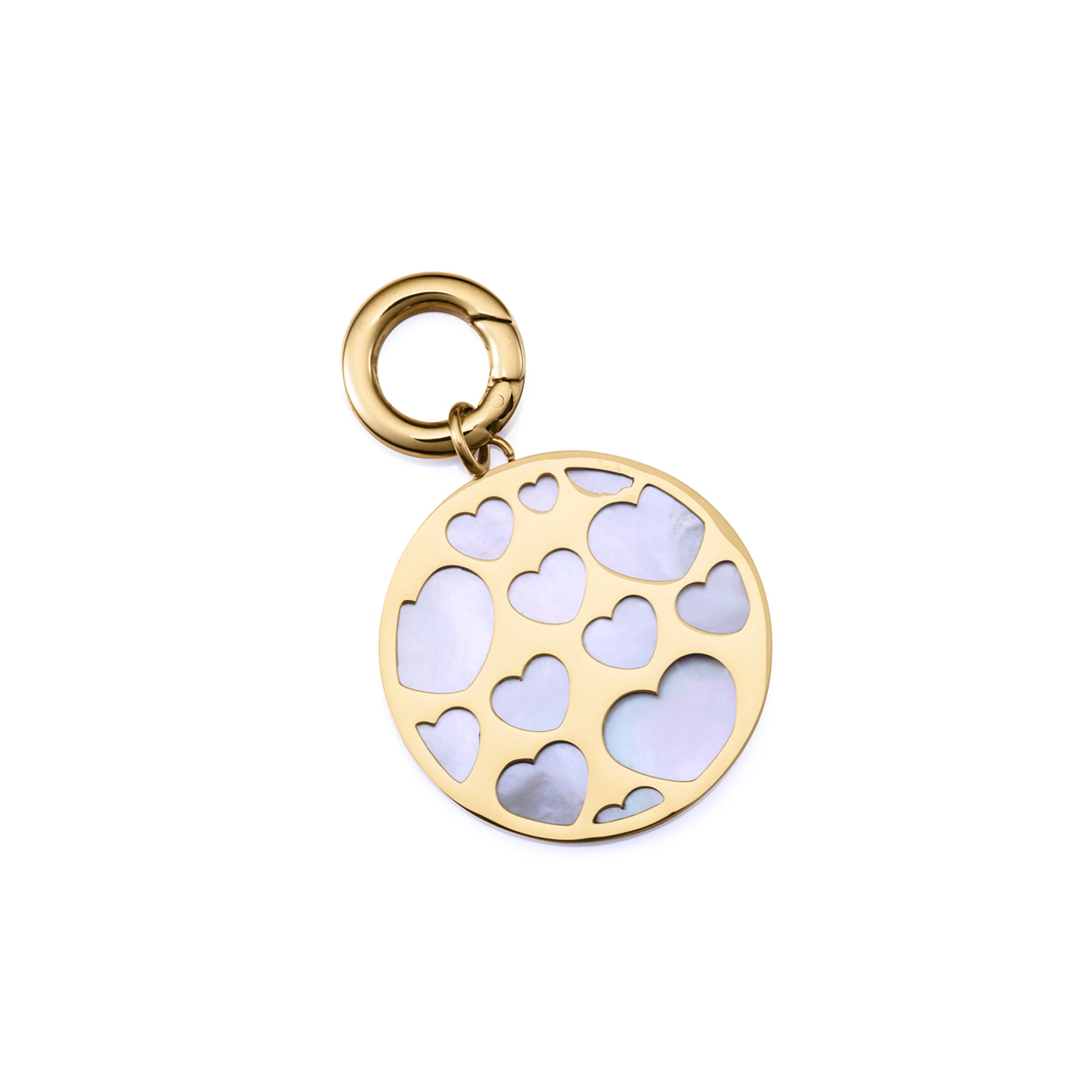 Motivo Chic de acero Ip dorado estrella con madre perla y corazón dorado y circonita blanca