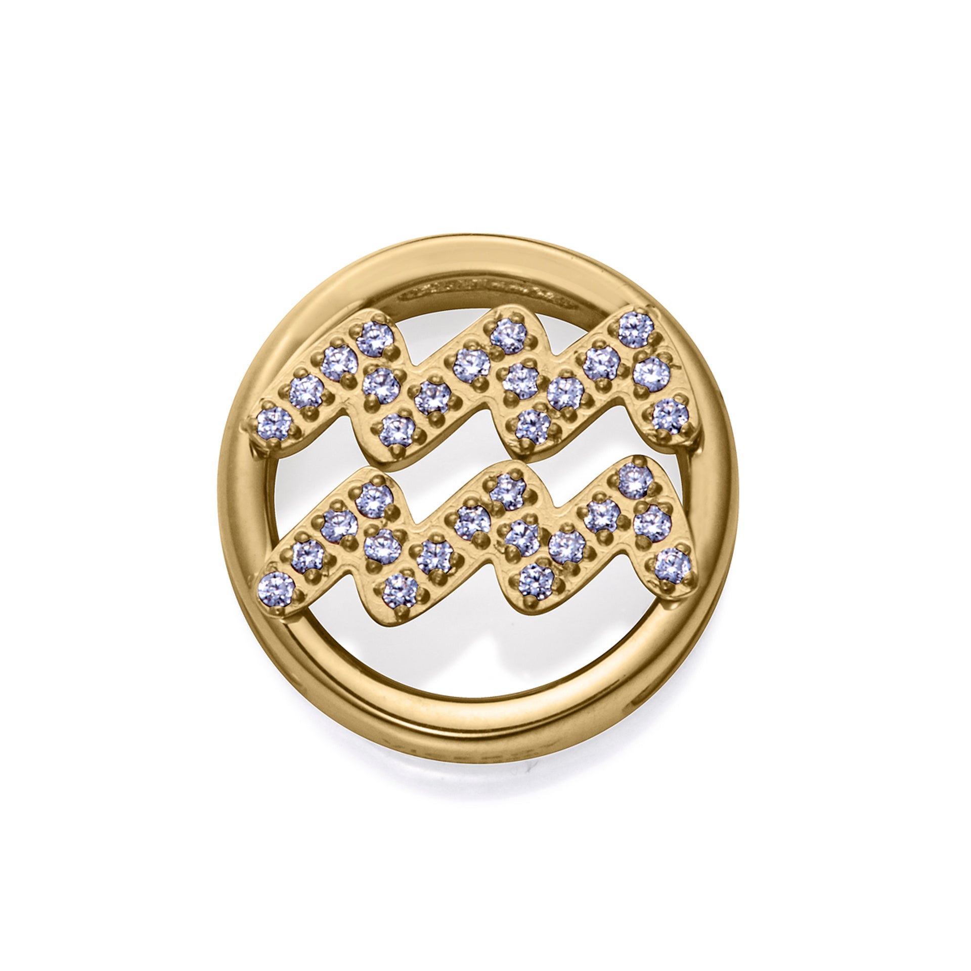 Motivo Horóscopo Acuario de mujer acero Ip dorado con circonitas