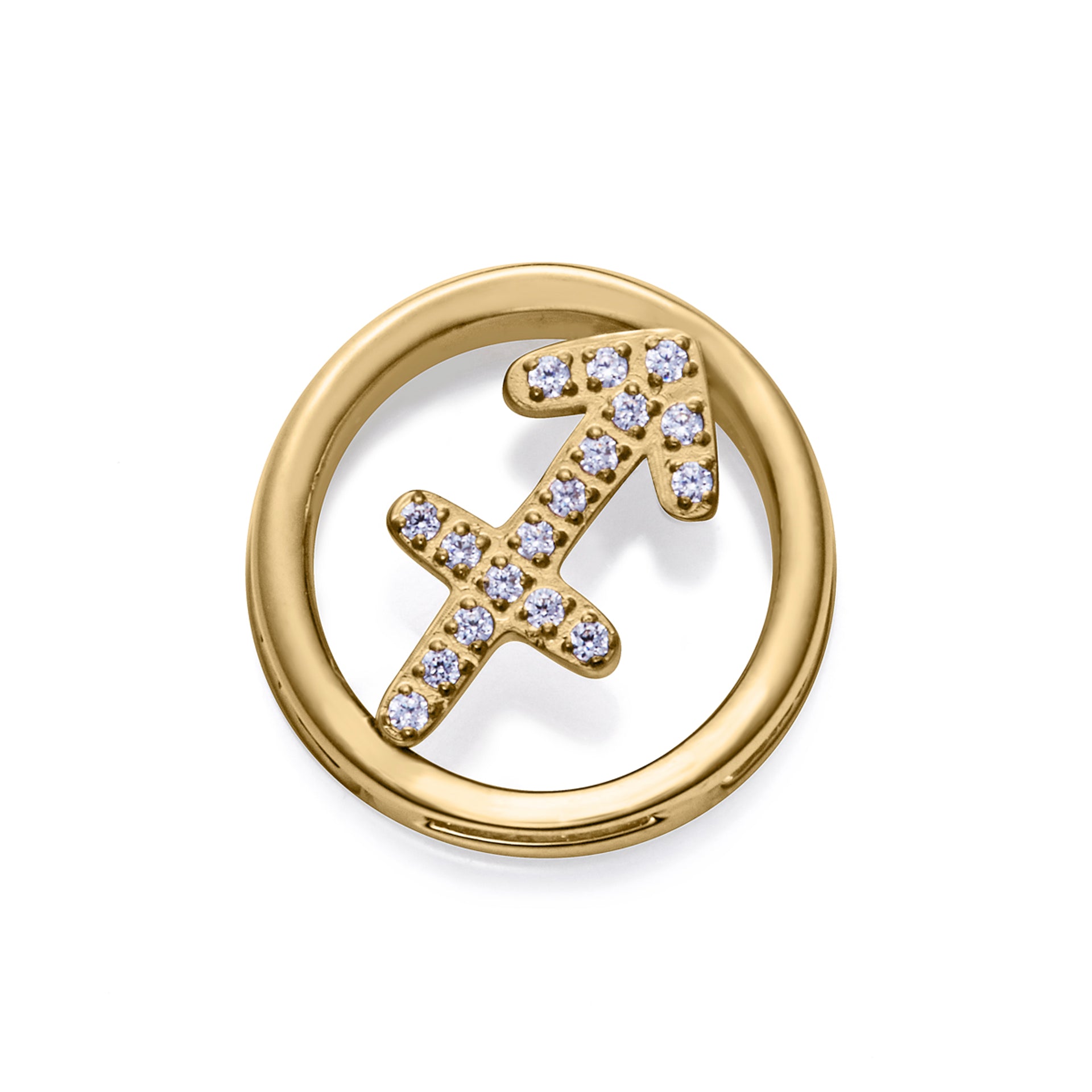 Motivo Horóscopo Sagitario de mujer acero Ip dorado con circonitas