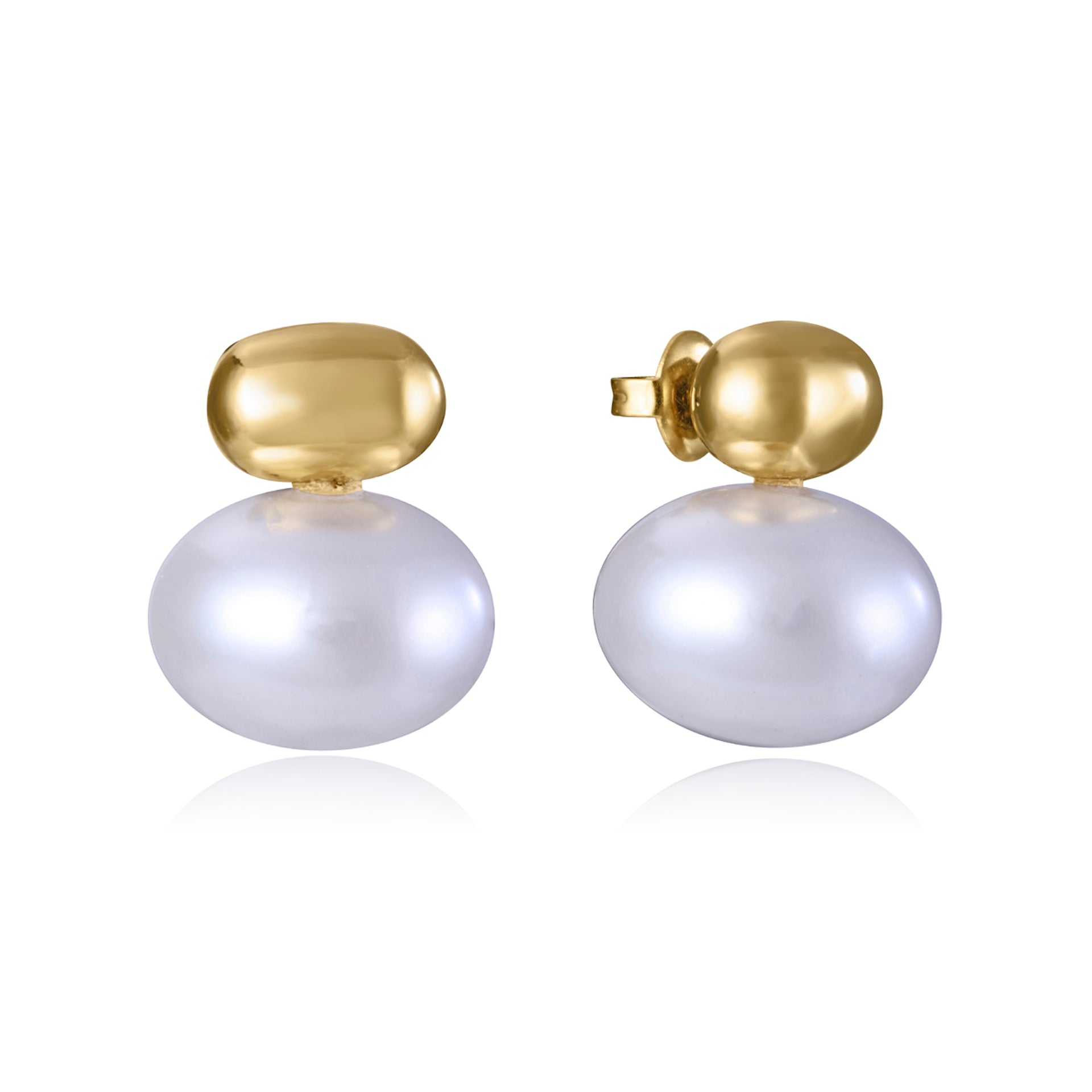 Pendientes Chic acero en Ip dorado con perlas naturales blancas