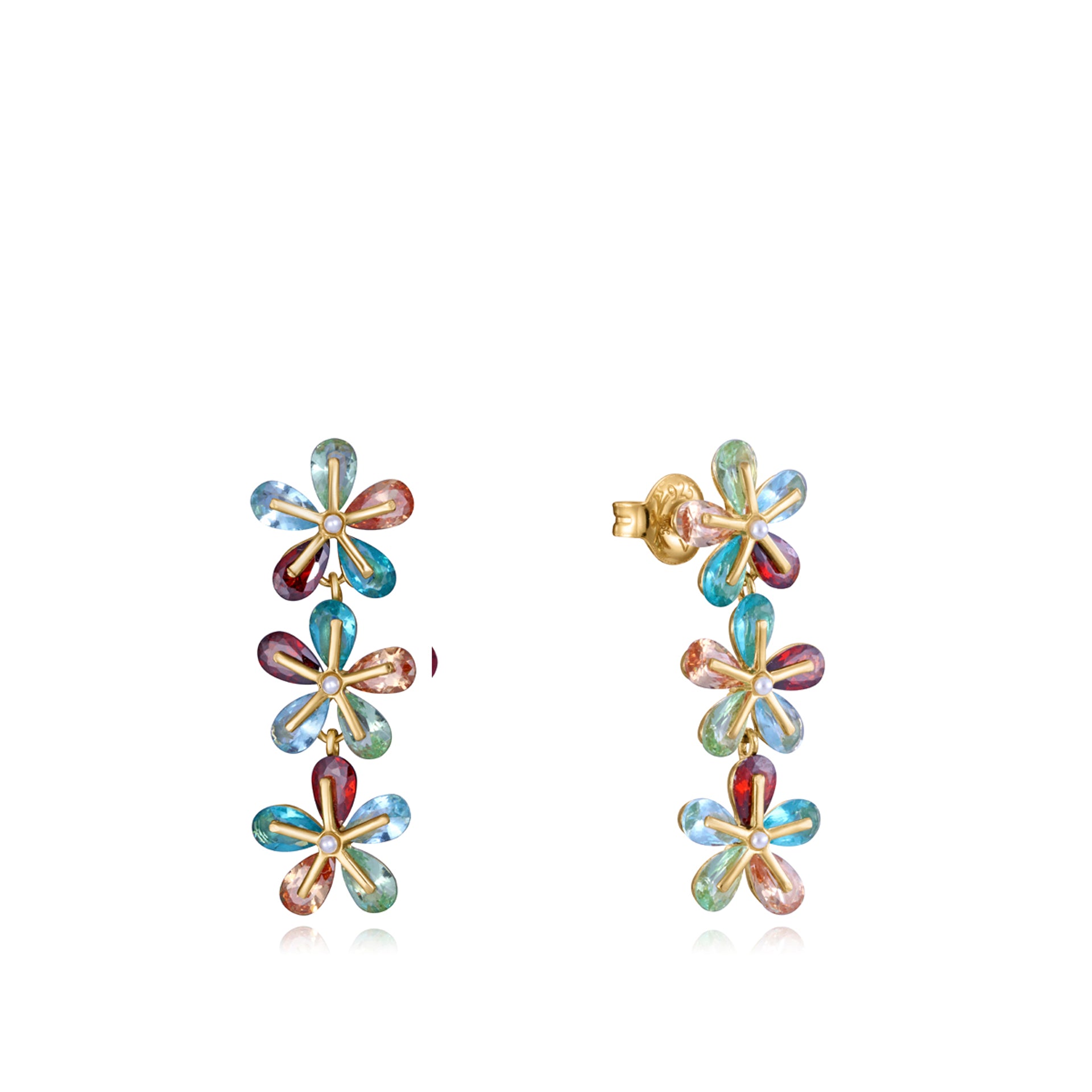 Pendientes Elegant de plata de ley con baño de y cristales de colores