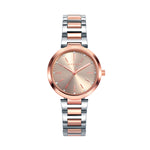 Reloj caja acero con corona en Ip rosa y brazalete bicolor acero Ip rosa con movimiento cuarzo