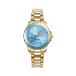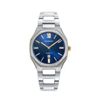 Reloj caja bitono de acero Ip dorado e Ip azul 20 Atm,brazalete de acero Ip dorado,movimento cuarzo