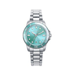 Reloj de acero con esfera verde y movimiento de cuarzo