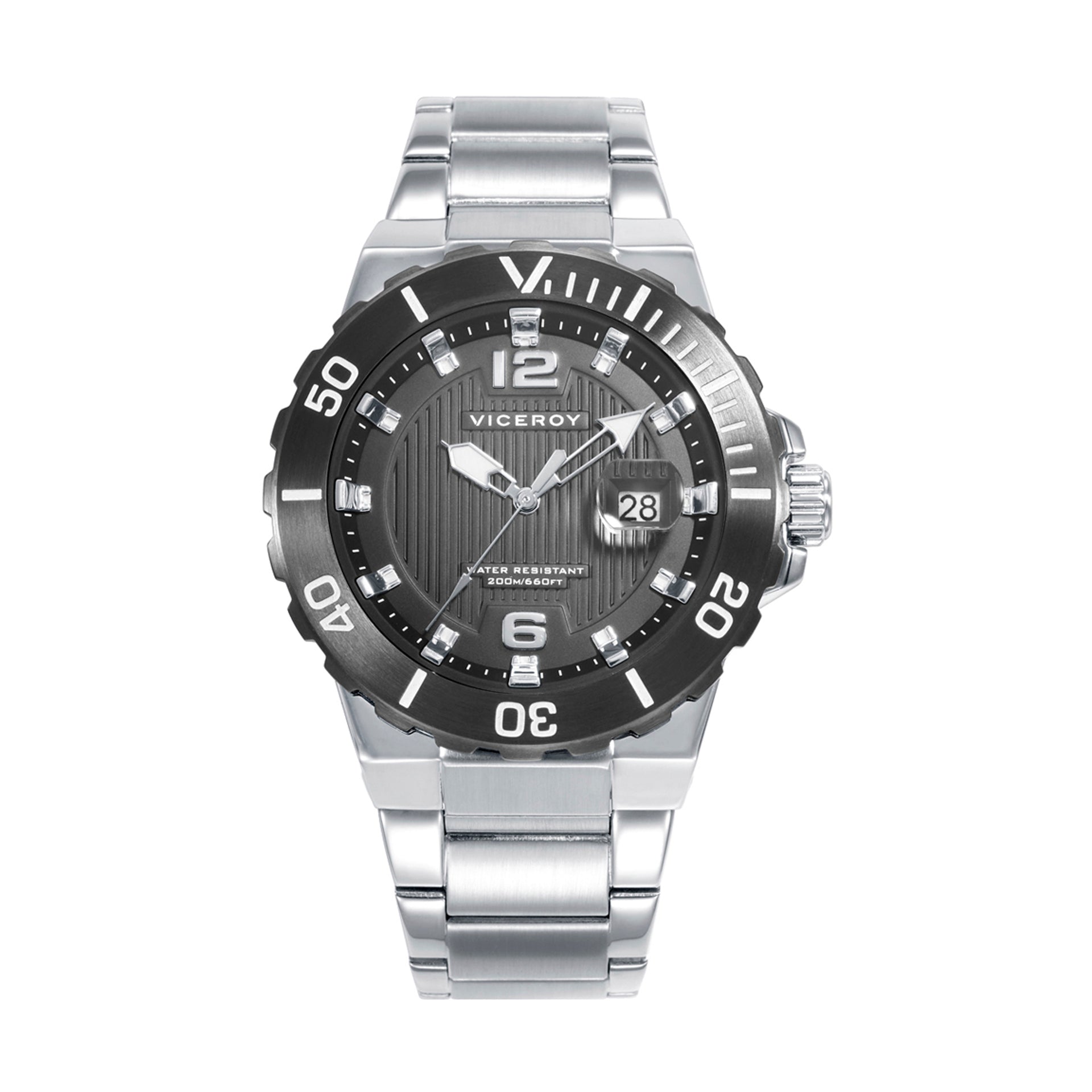 Reloj caja de acero con bisel Ip gris rotatorio 20 atm y brazalete de acero con movimiento cuarzo
