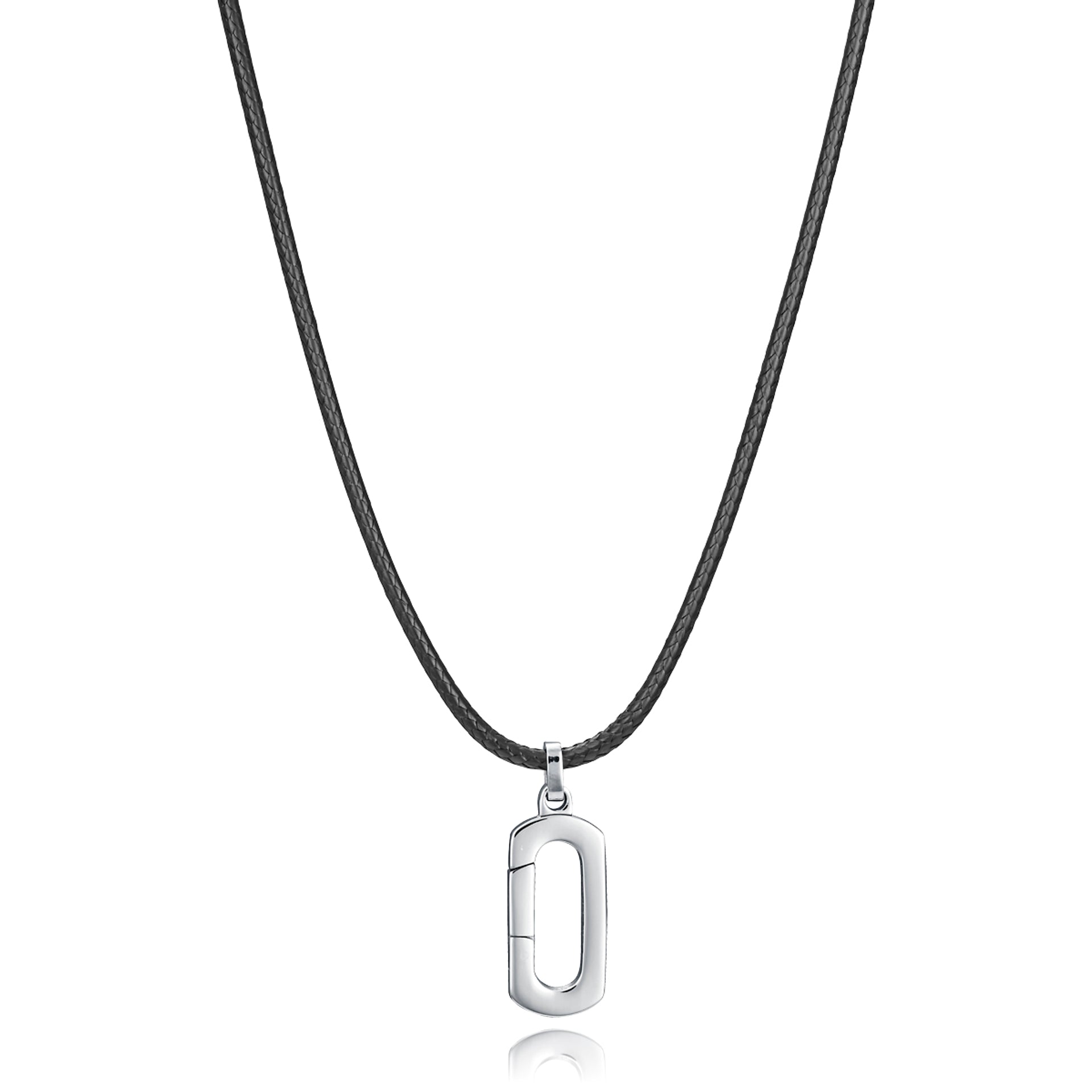 Collar de hombre de acero y cordón negro con colgante mosquetón