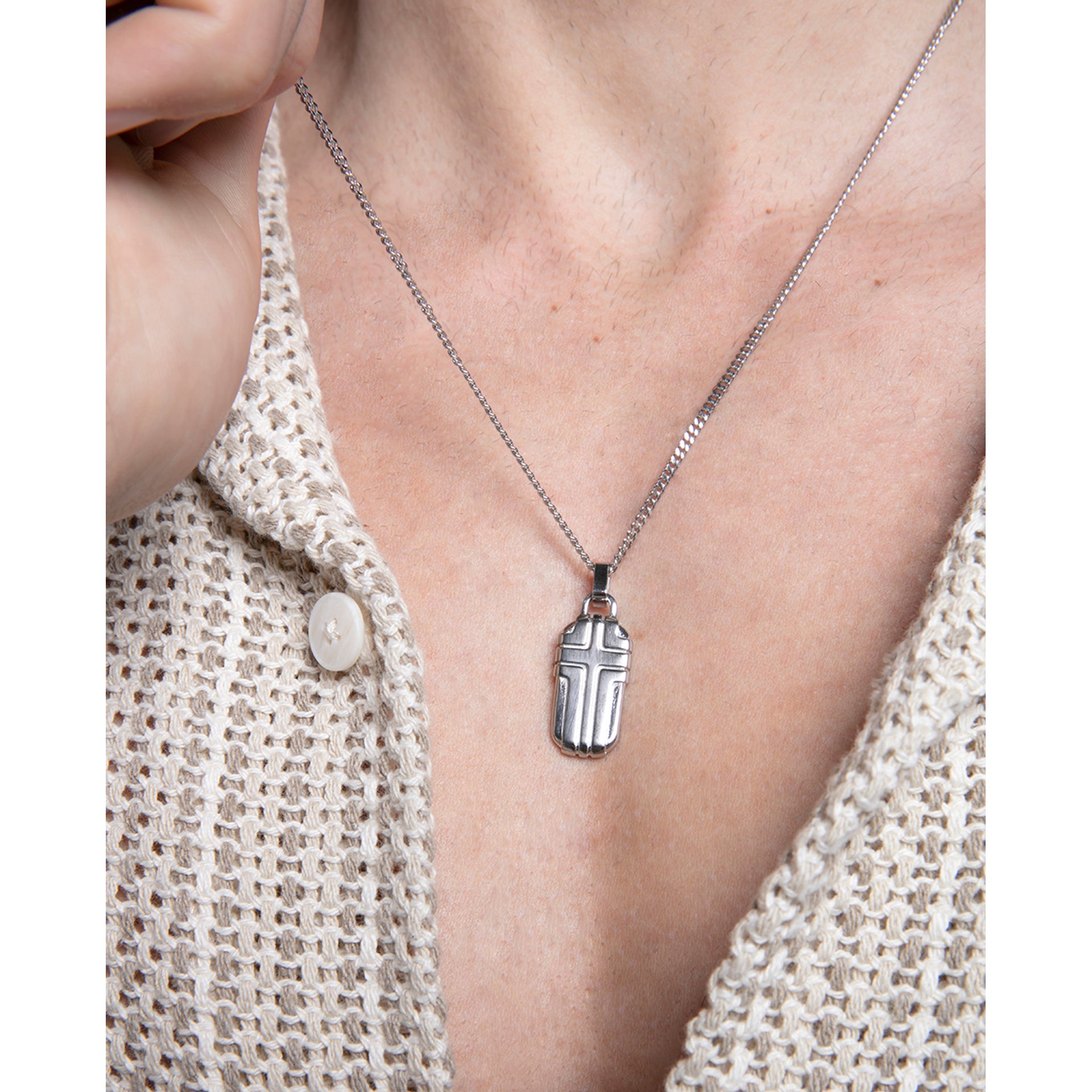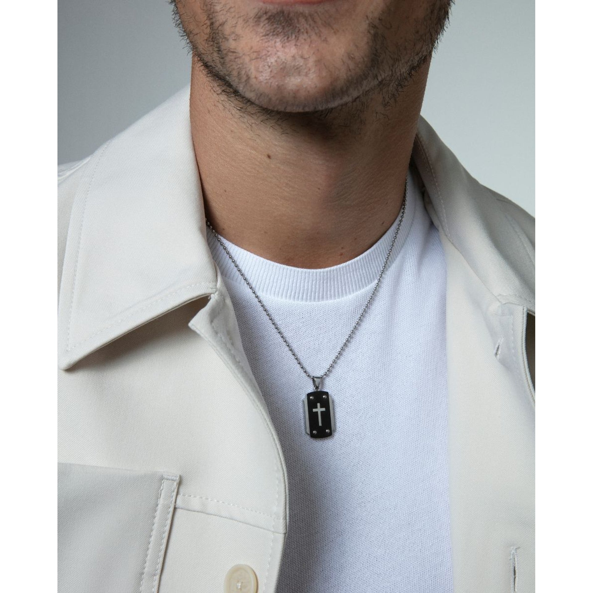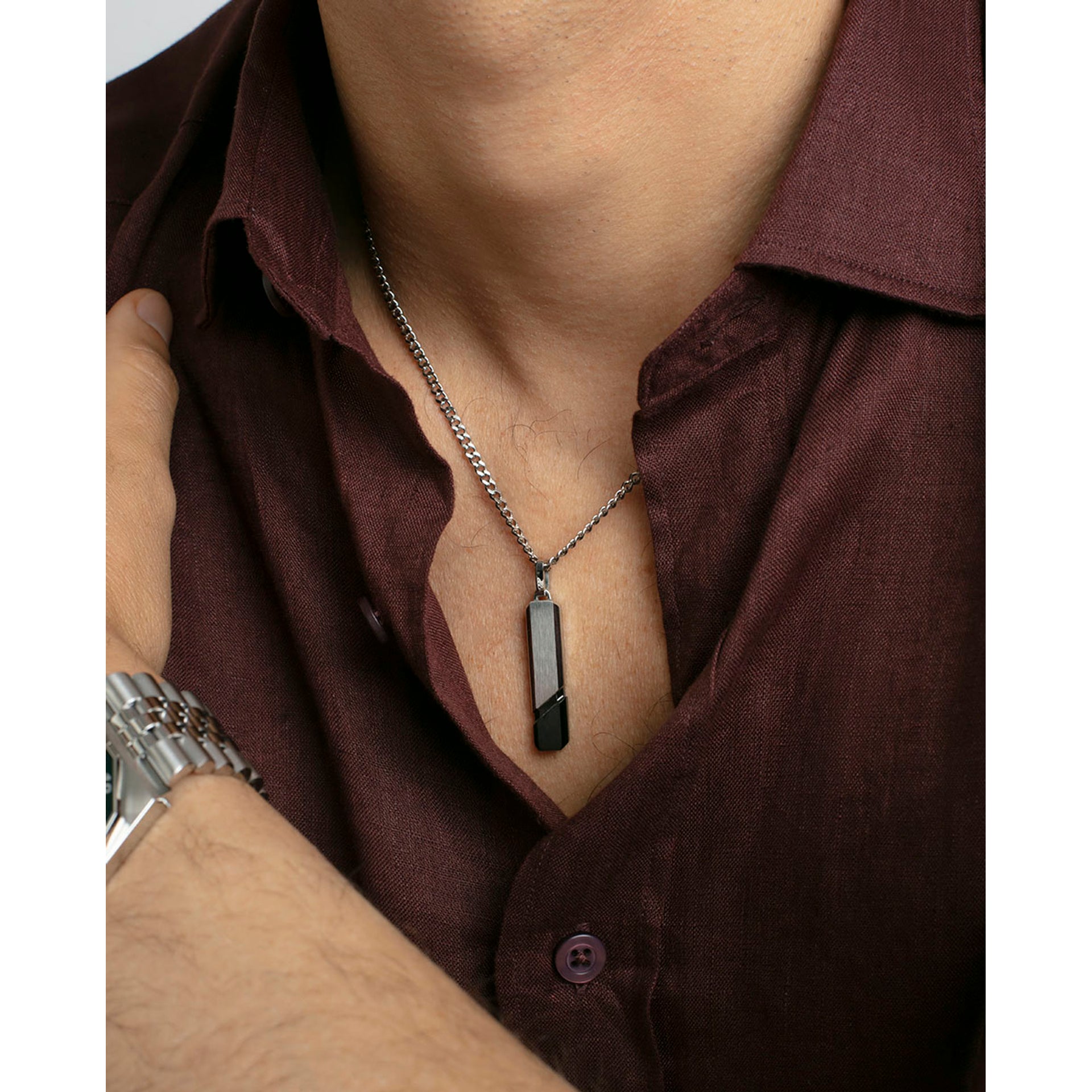 Collar de hombre de acero con colgante con diseño en Ip negro
