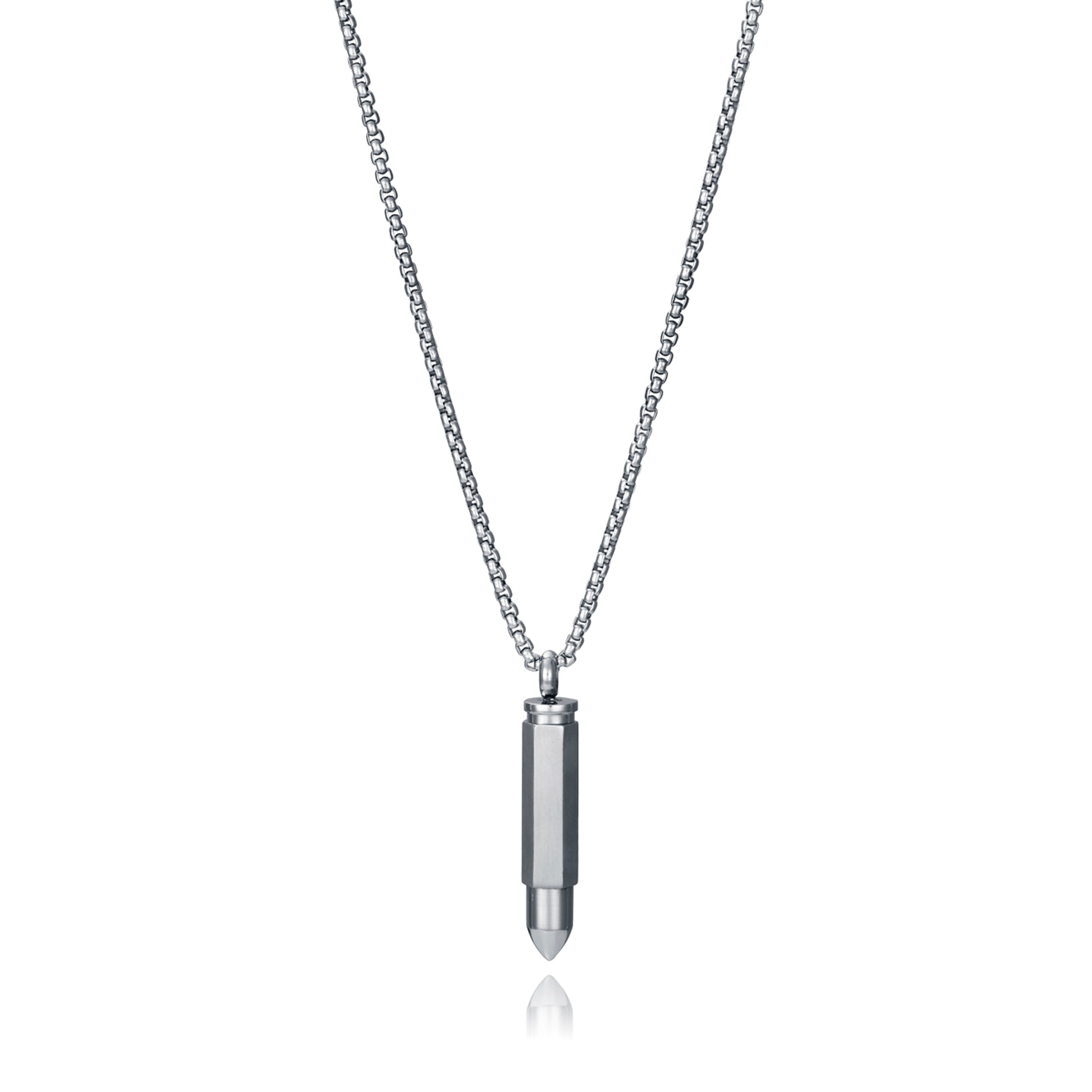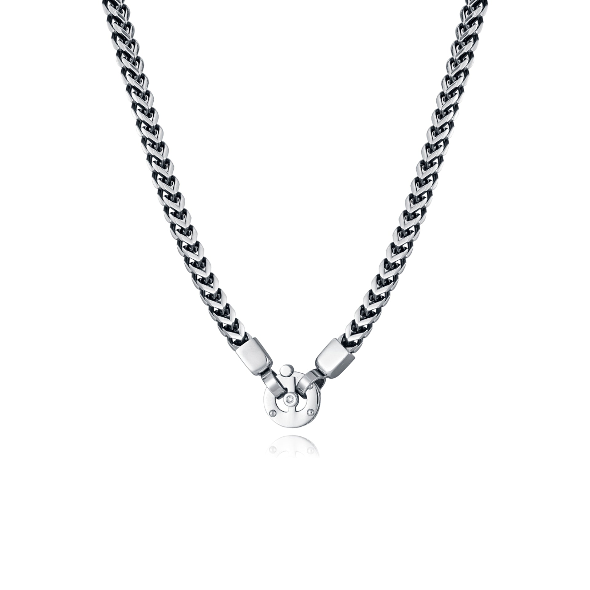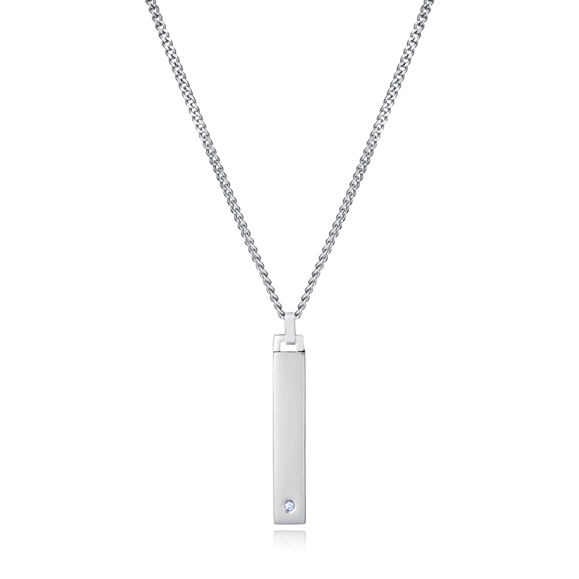 Collar de hombre de acero y barra colgante colección Laura Escanes con diamante creado