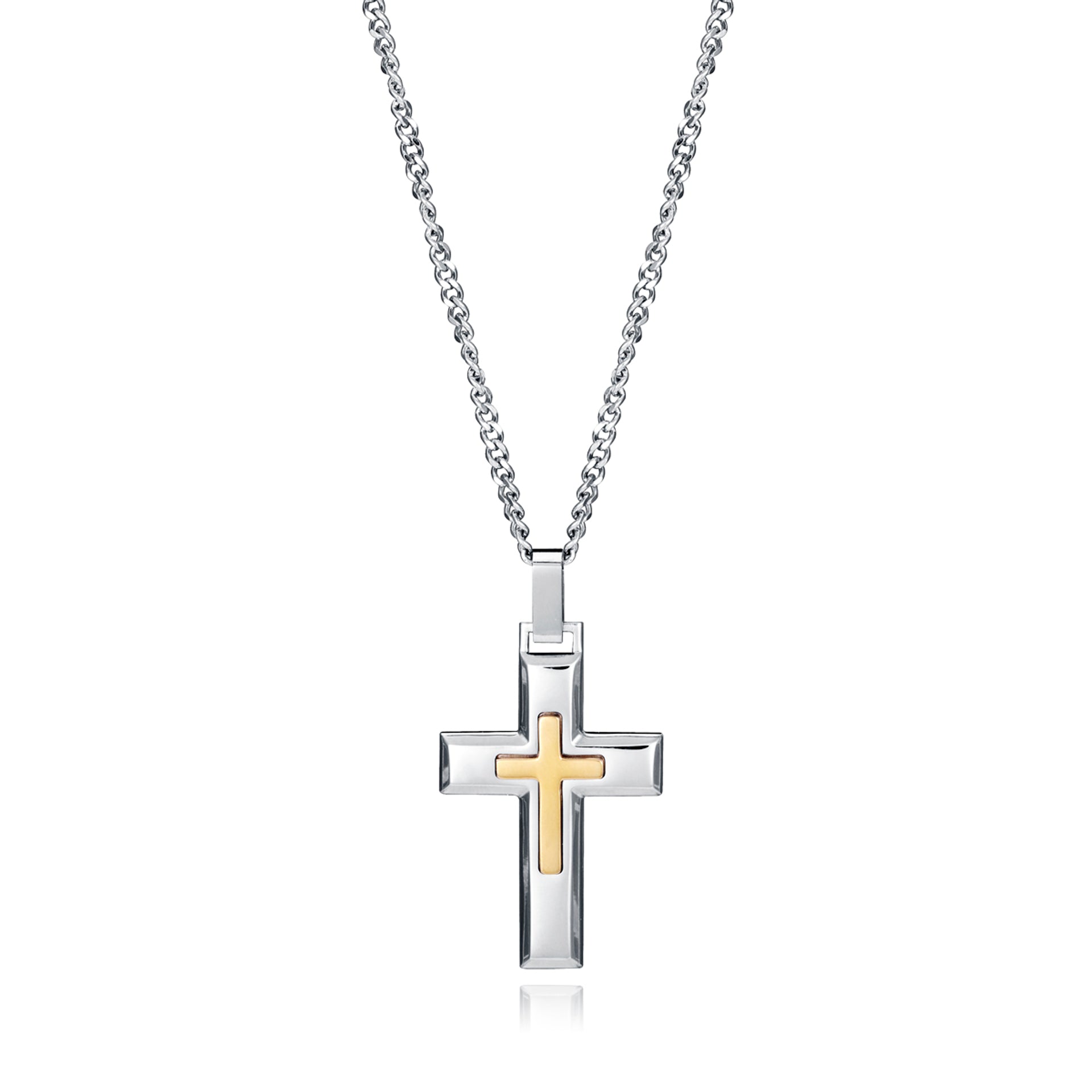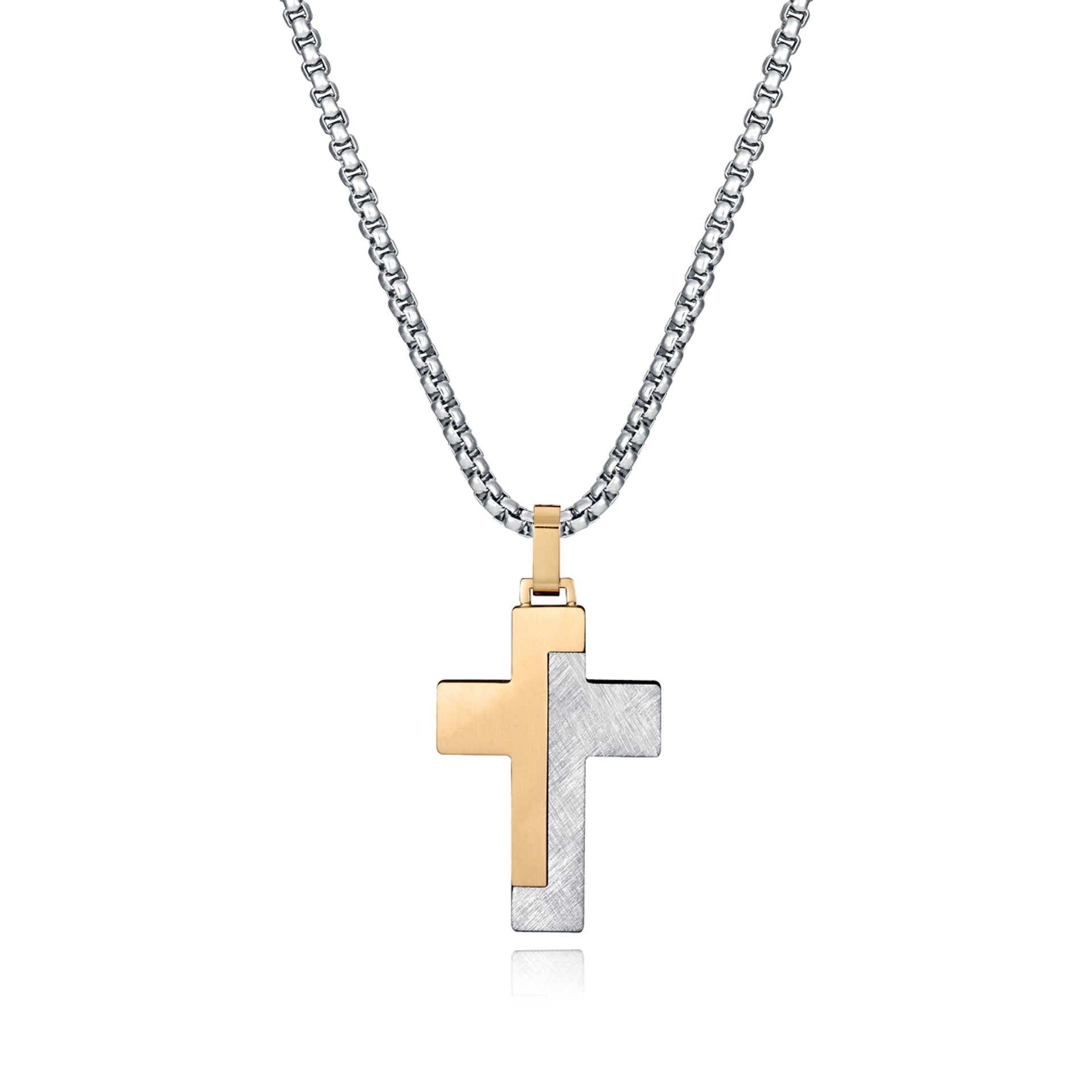 Collar de hombre de aceroIp dorado con colgante con cruz