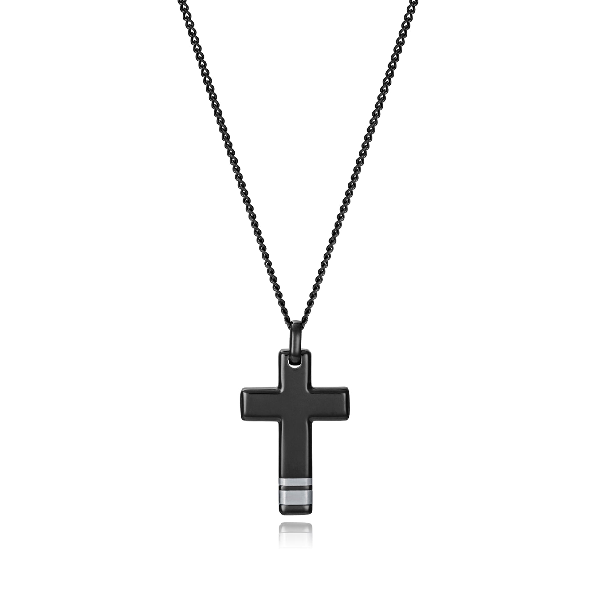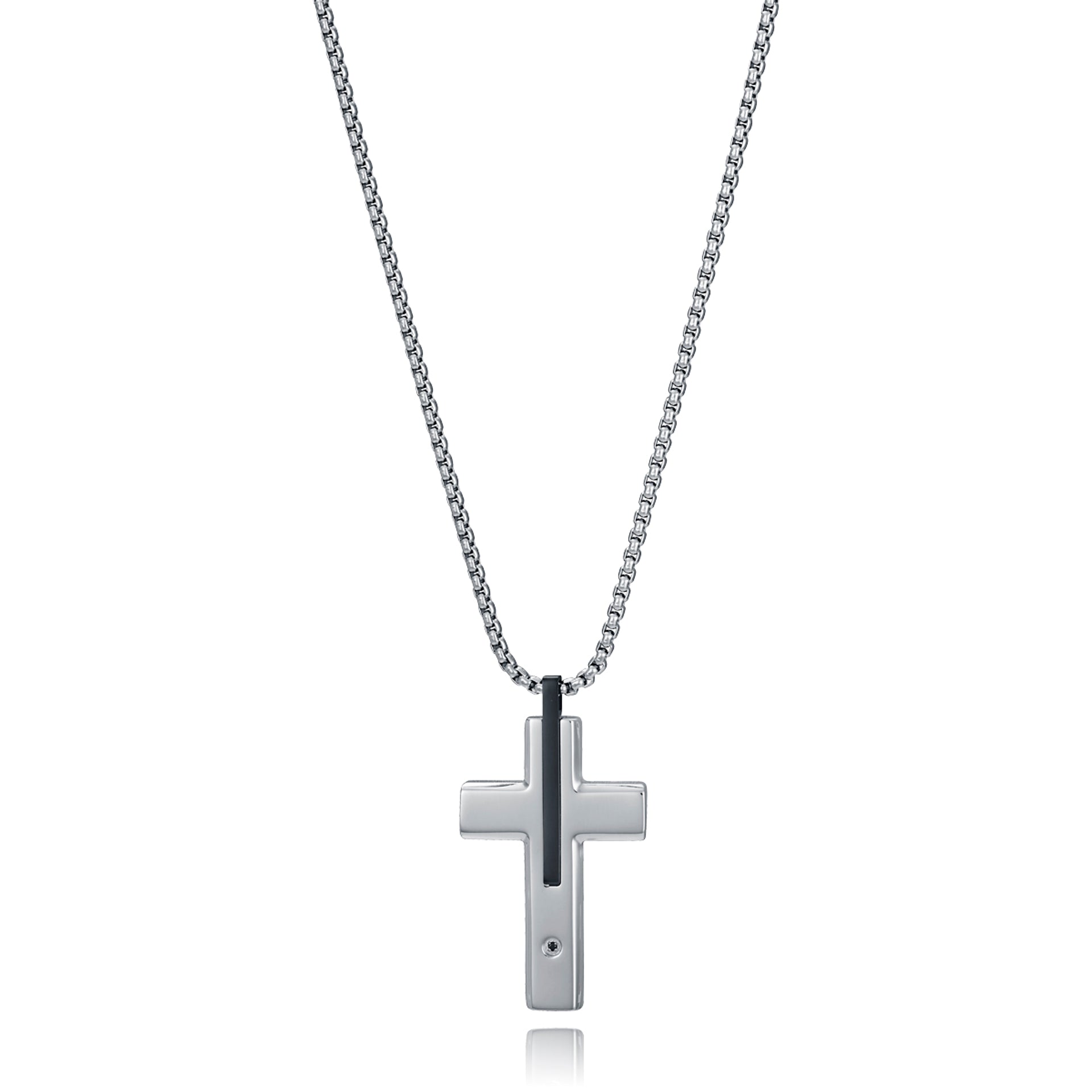 Collar de hombre de acero e Ip negro con cruz y circonita negra