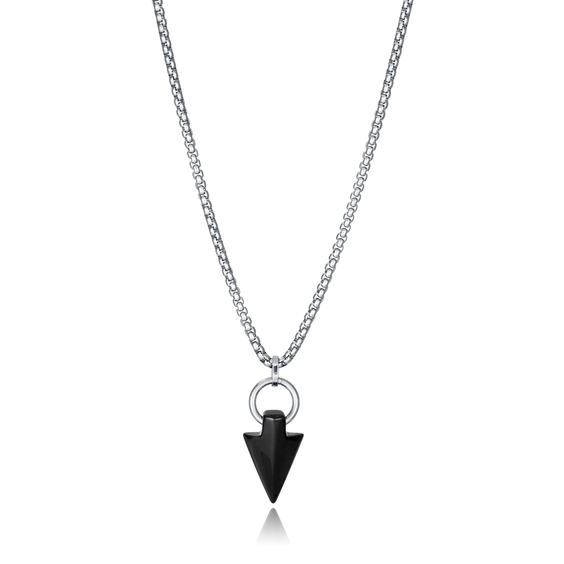Collar de hombre de acero y colgante de flecha en piedra natural