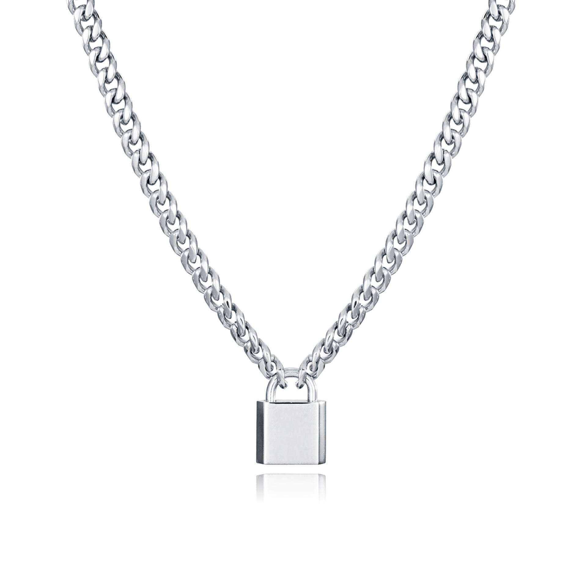 Collar de cadena para hombre en acero con motivo colgante de candado