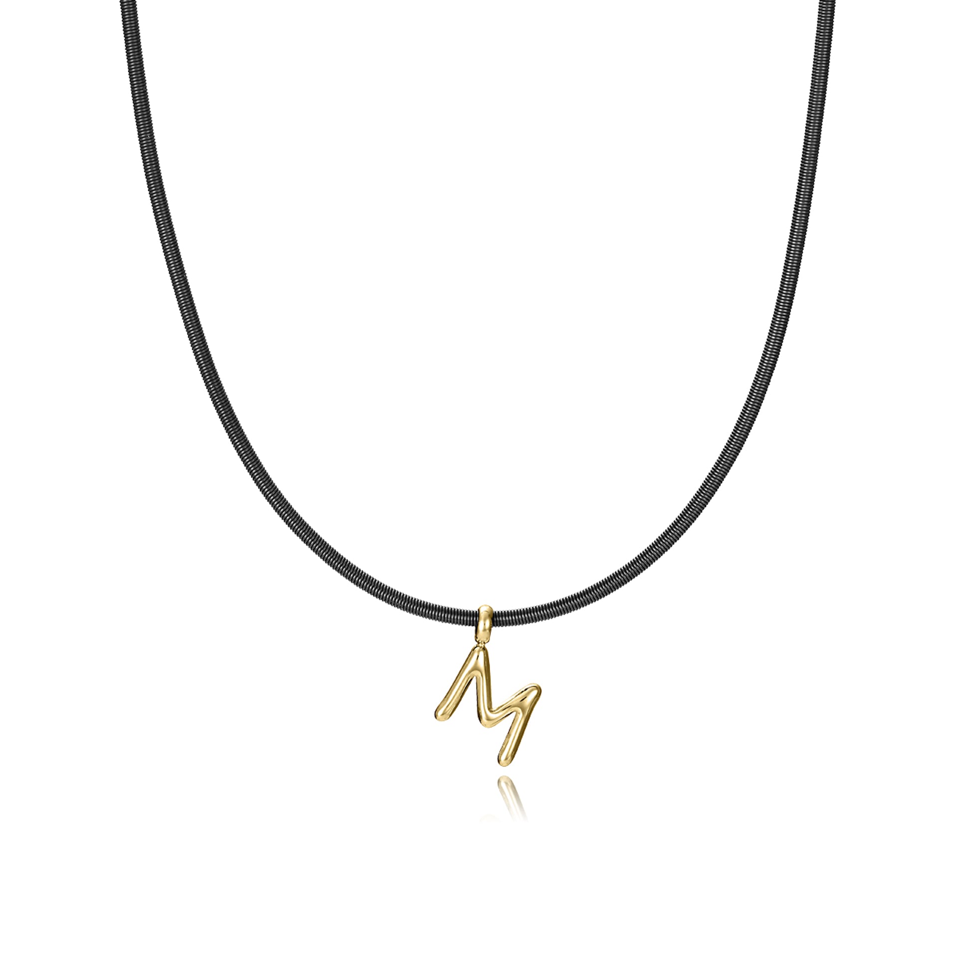 Collar de mujer de acero Ip dorado y negro doble esterilla redonda con una X con circonitas