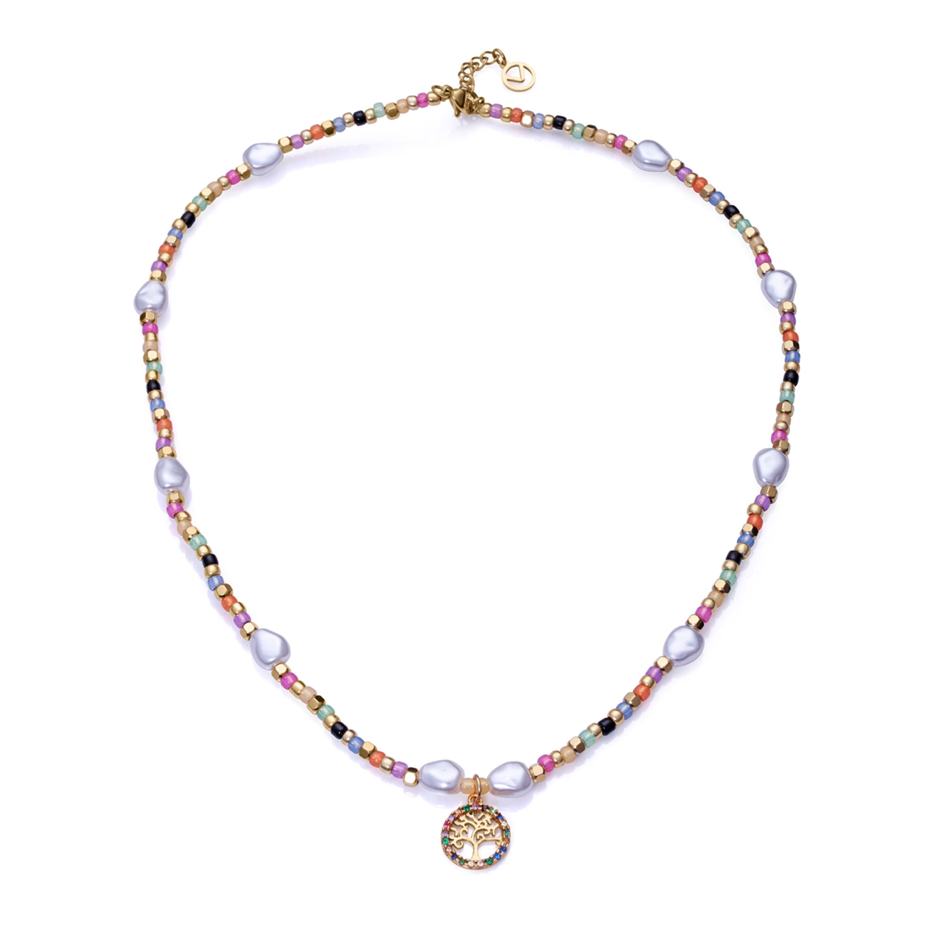 Collar Elegant de plata de ley con baño de oro y circonitas de colores