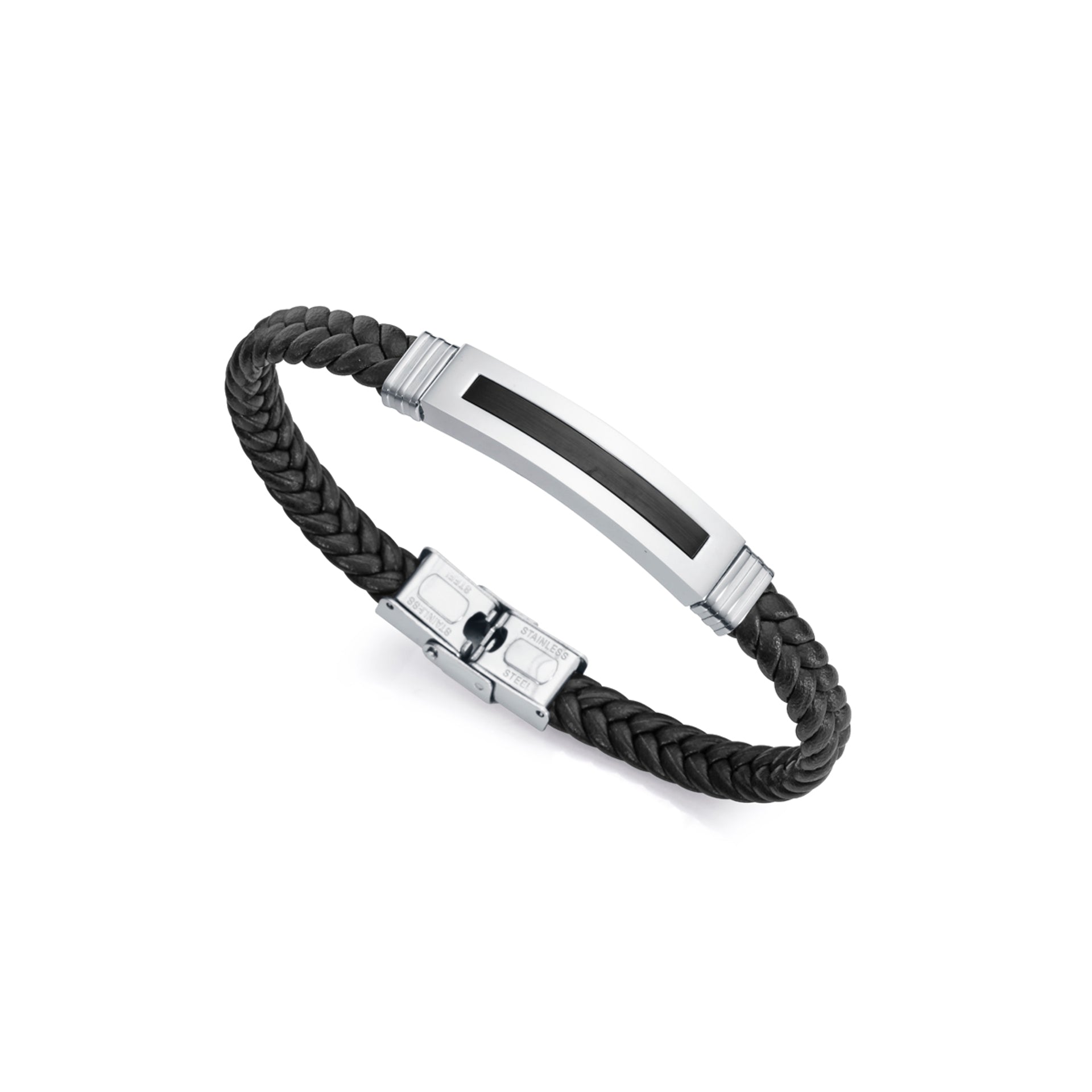 Pulsera de hombre de acero trenzada con piel negra