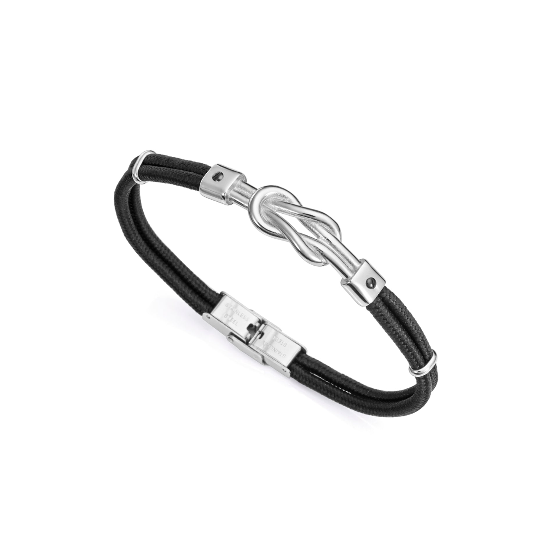 Pulsera de piel negra y marrón para hombre con motivo cordón negro y detalles en acero