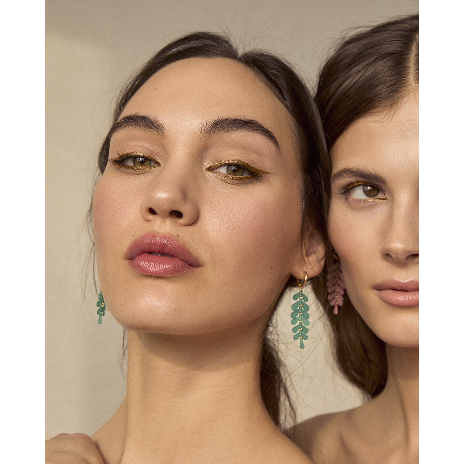 Pendientes para mujer en acero Ip dorado y rosa acrílico