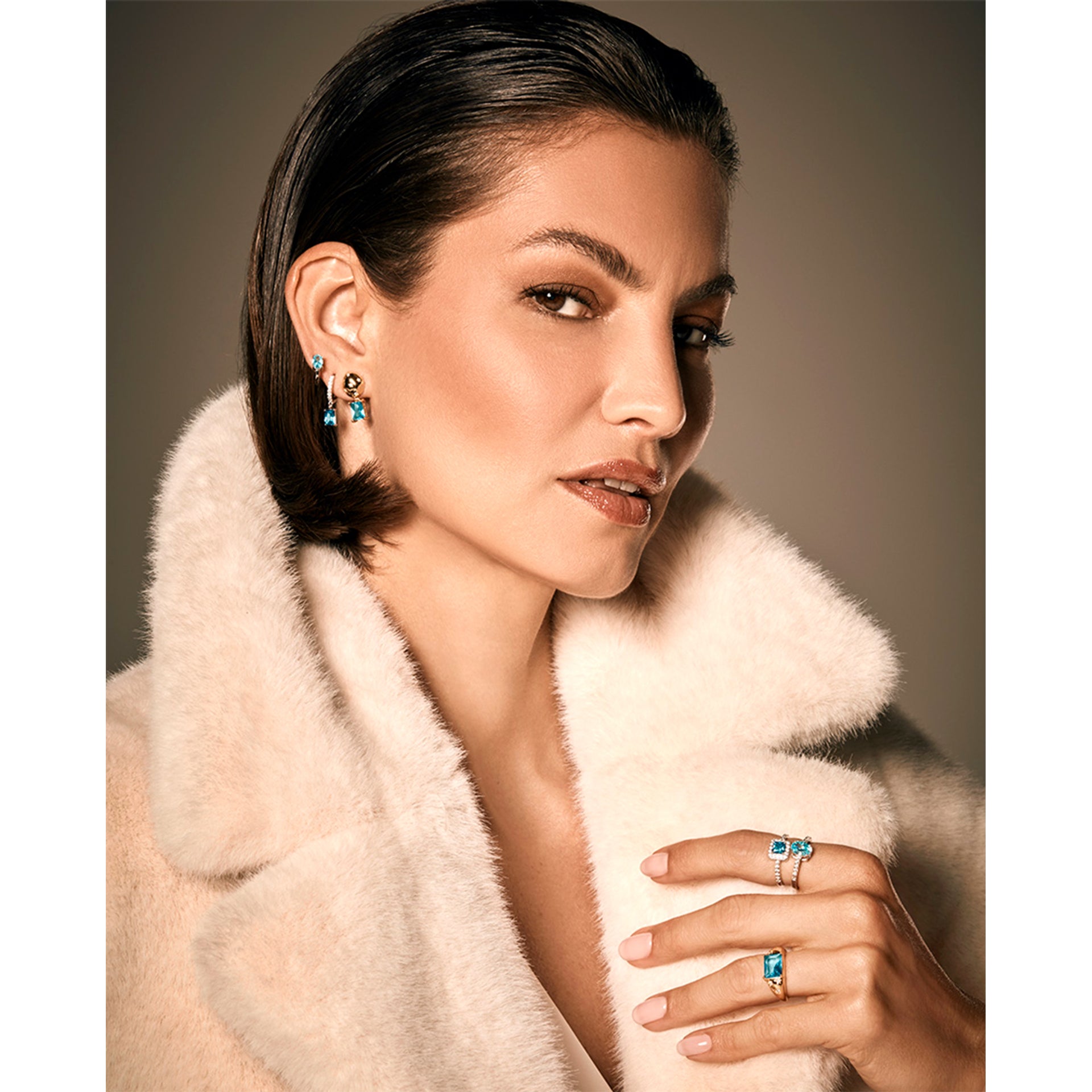 Anillo Elegant de plata de ley con baño de oro y cristal azul y circonitas blancas