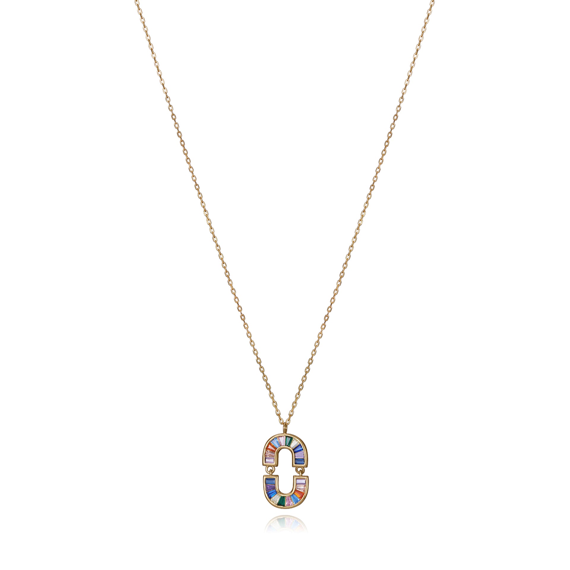 Collar de plata de ley con baño de oro y aro colgante con circonitas de colores y blanca