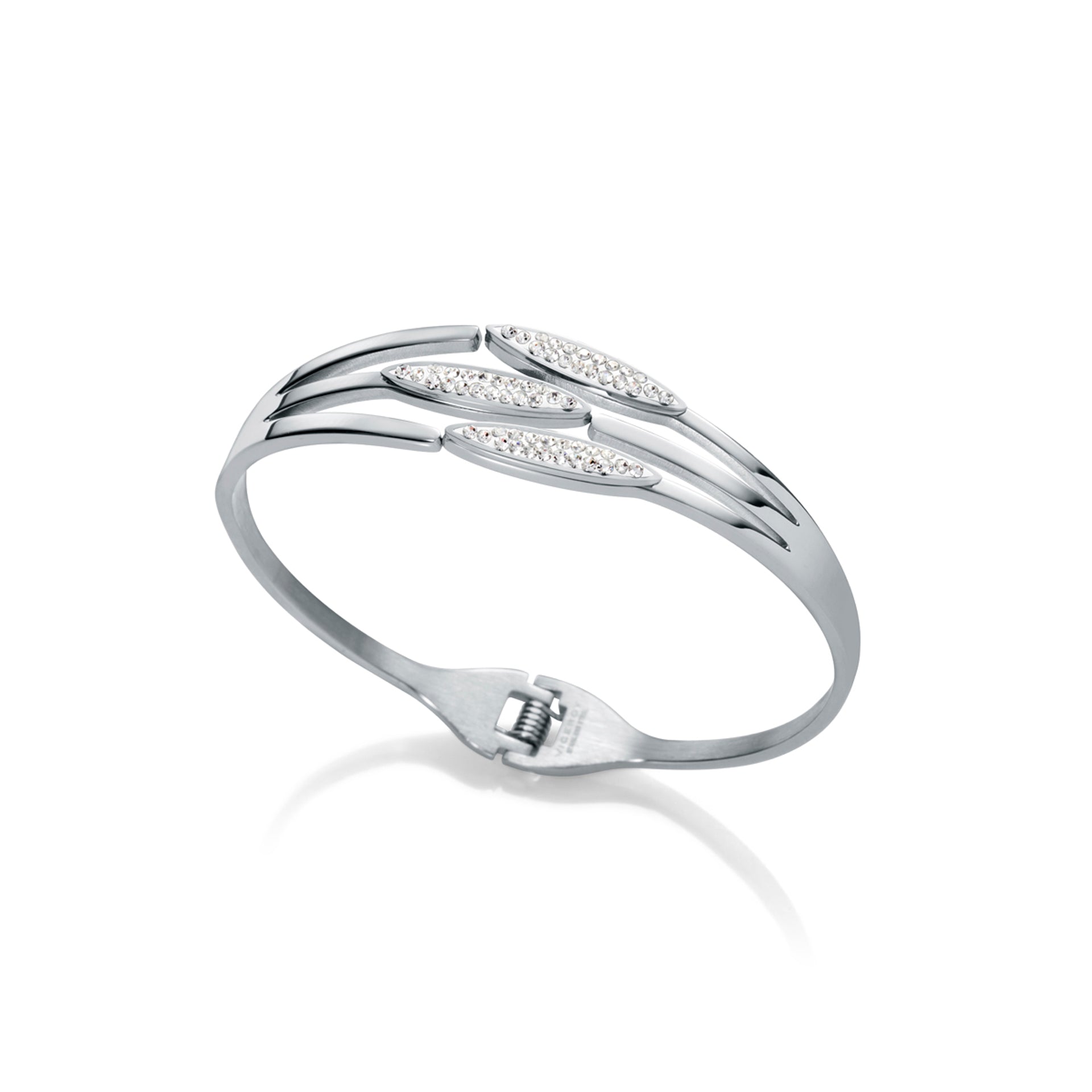 Brazalete Air de acero rosado y circonitas con apertura lateral